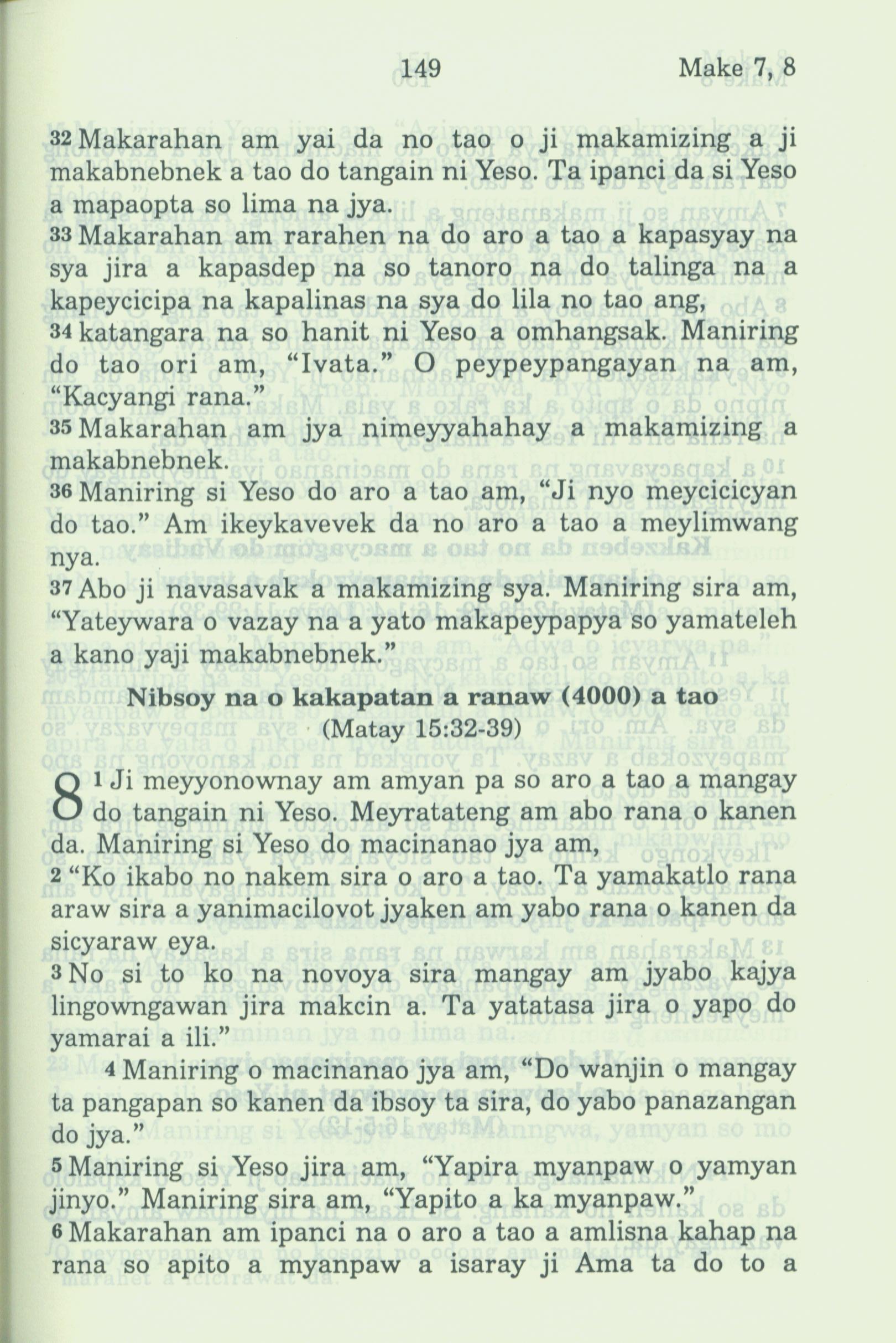 1994年新约全书 马可福音 7 章 32 节到 8 章 6 节