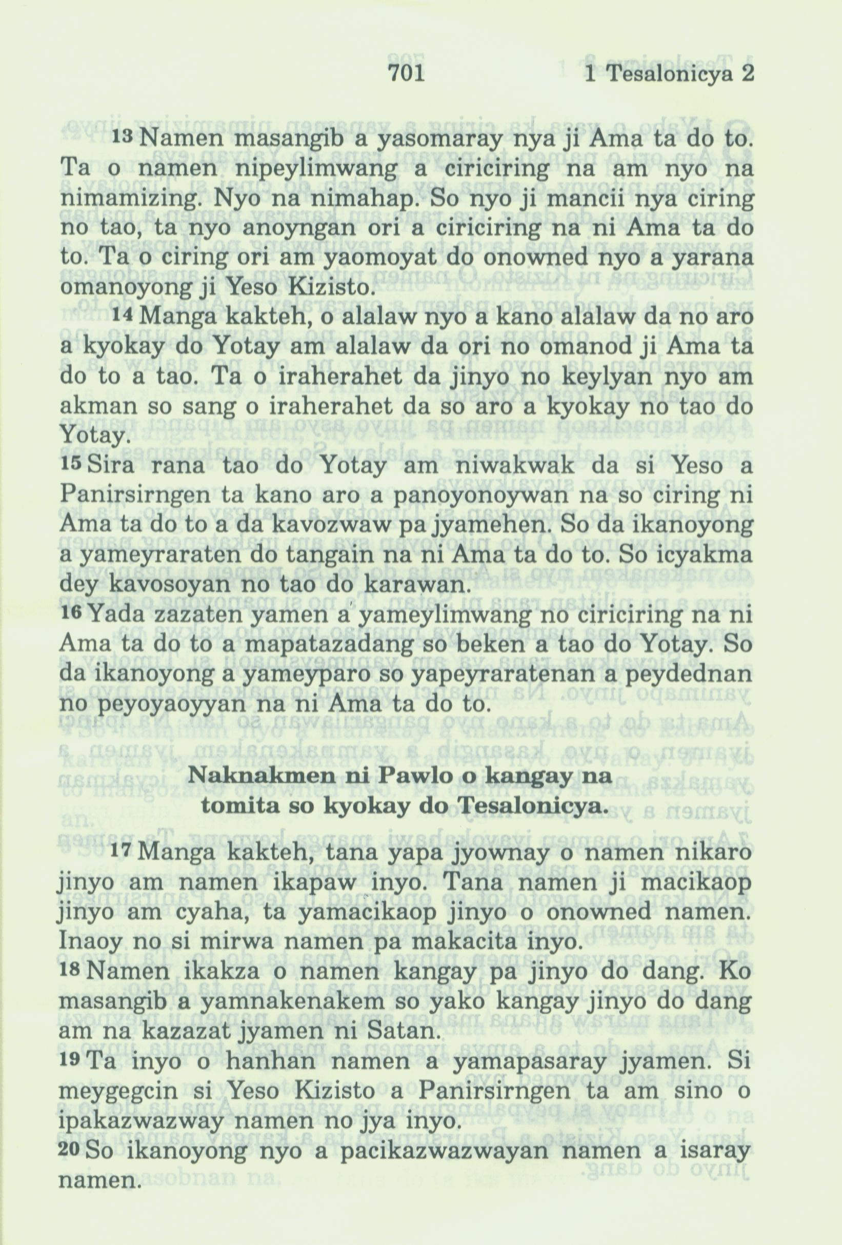 1994年新约全书 帖撒罗尼迦前书 2 章 13 节到 2 章 20 节
