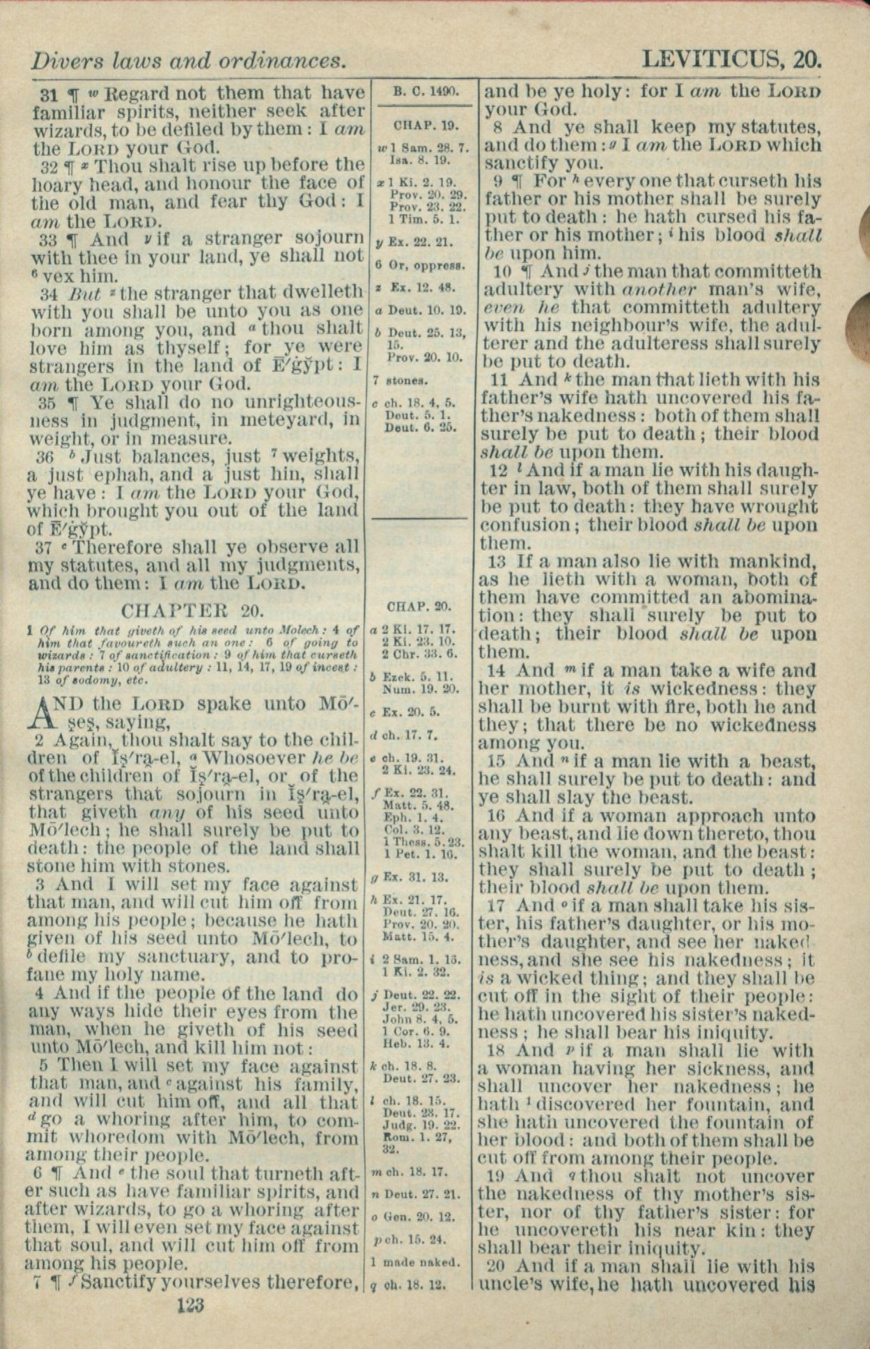 1916年Holy Bible 利未记 19 章 31 节到 20 章 20 节