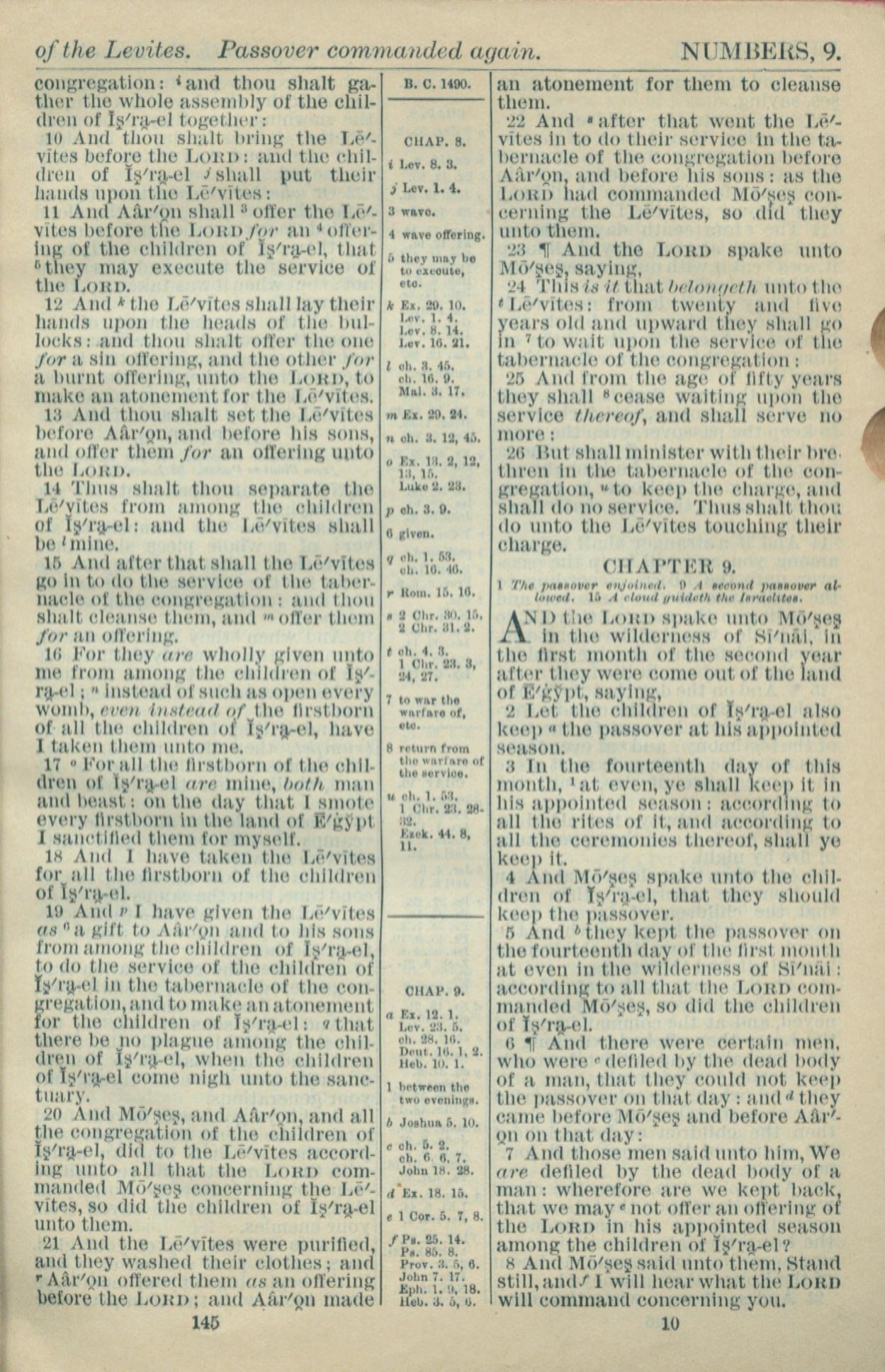 1916年Holy Bible 民数记 8 章 10 节到 9 章 8 节