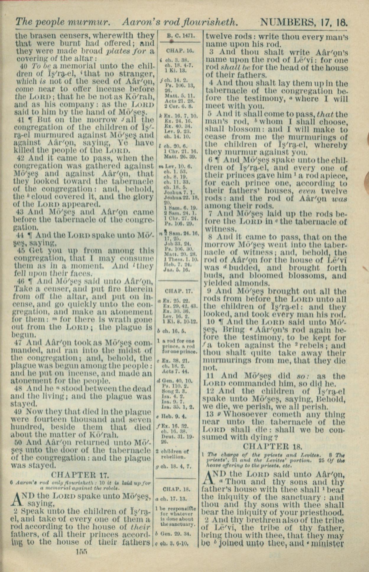1916年Holy Bible 民数记 16 章 40 节到 18 章 2 节