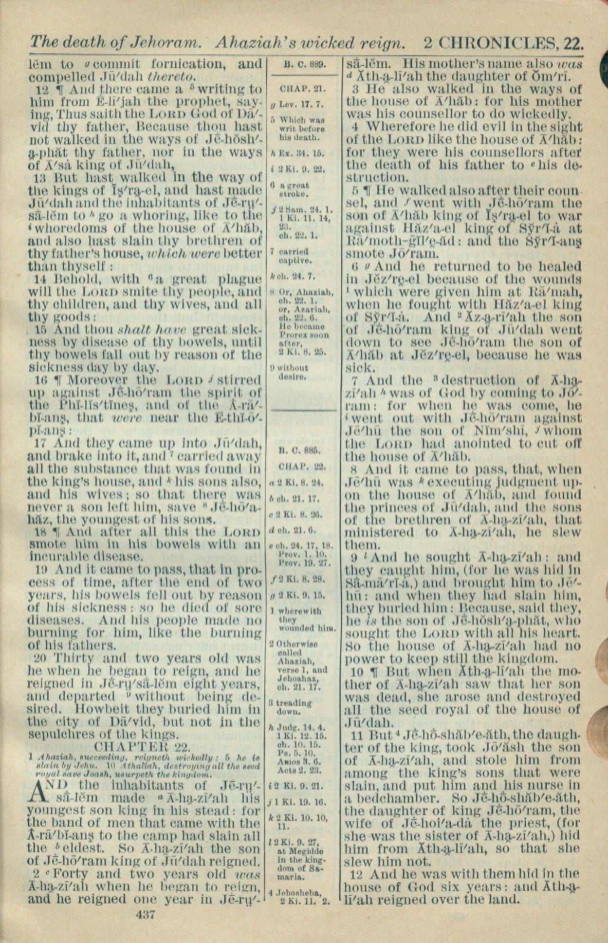 1916年Holy Bible 历代志下 21 章 12 节到 22 章 12 节
