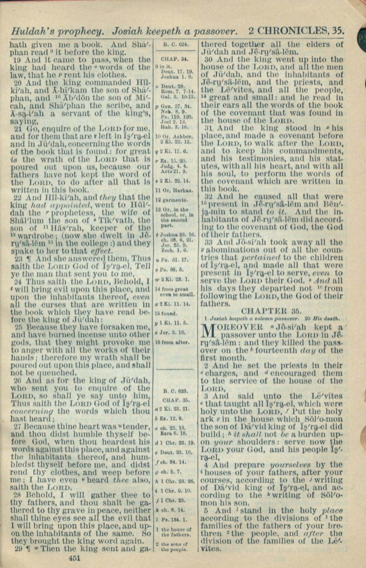 1916年Holy Bible 历代志下 34 章 19 节到 35 章 5 节