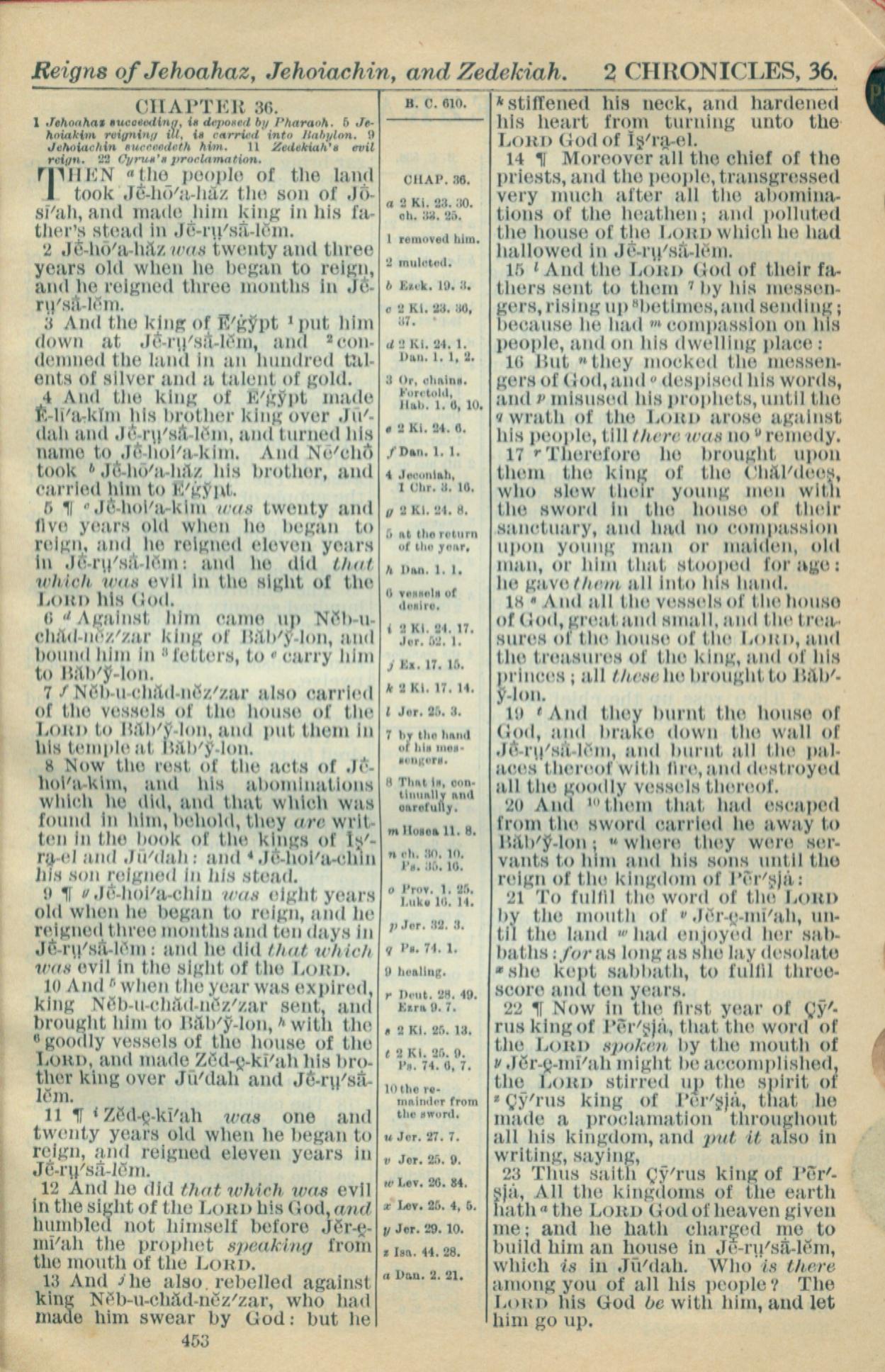 1916年Holy Bible 历代志下 36 章 1 节到 36 章 23 节