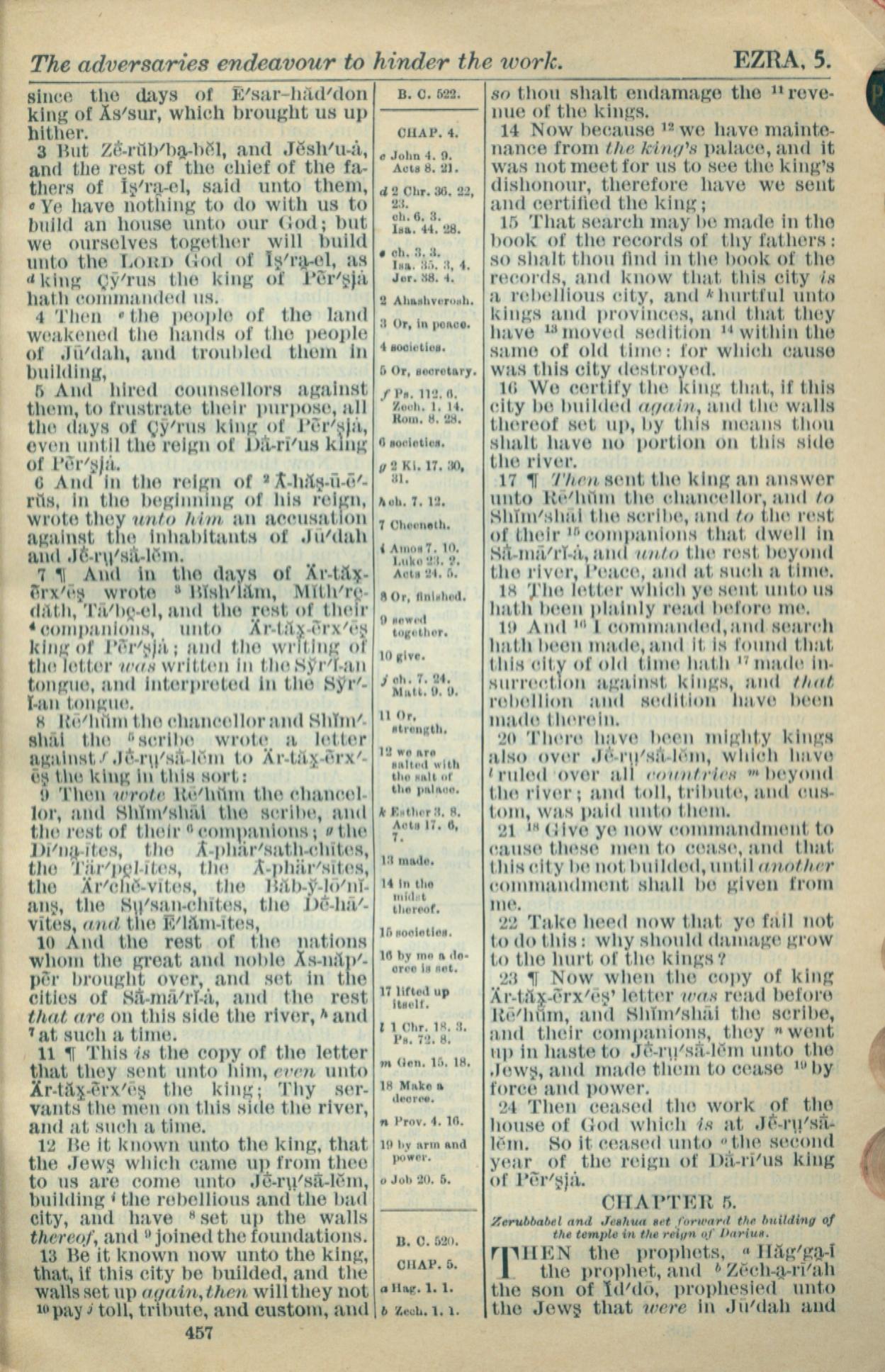 1916年Holy Bible 以斯拉记 3 章 3 节到 5 章 1 节