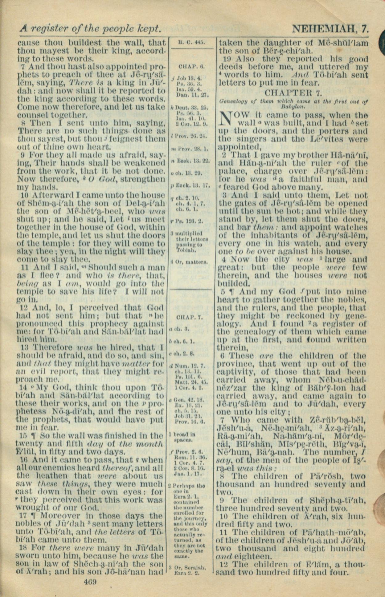 1916年Holy Bible 尼希米记 6 章 7 节到 7 章 12 节