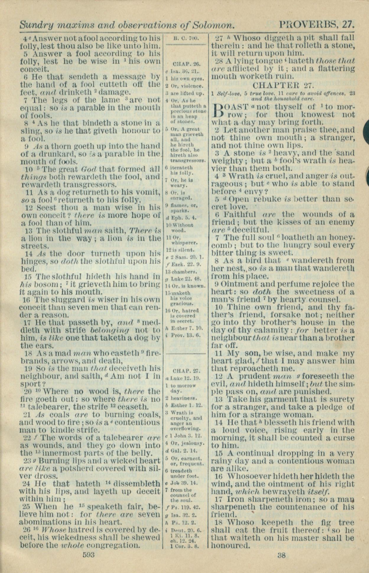 1916年Holy Bible 箴言 26 章 4 节到 27 章 18 节
