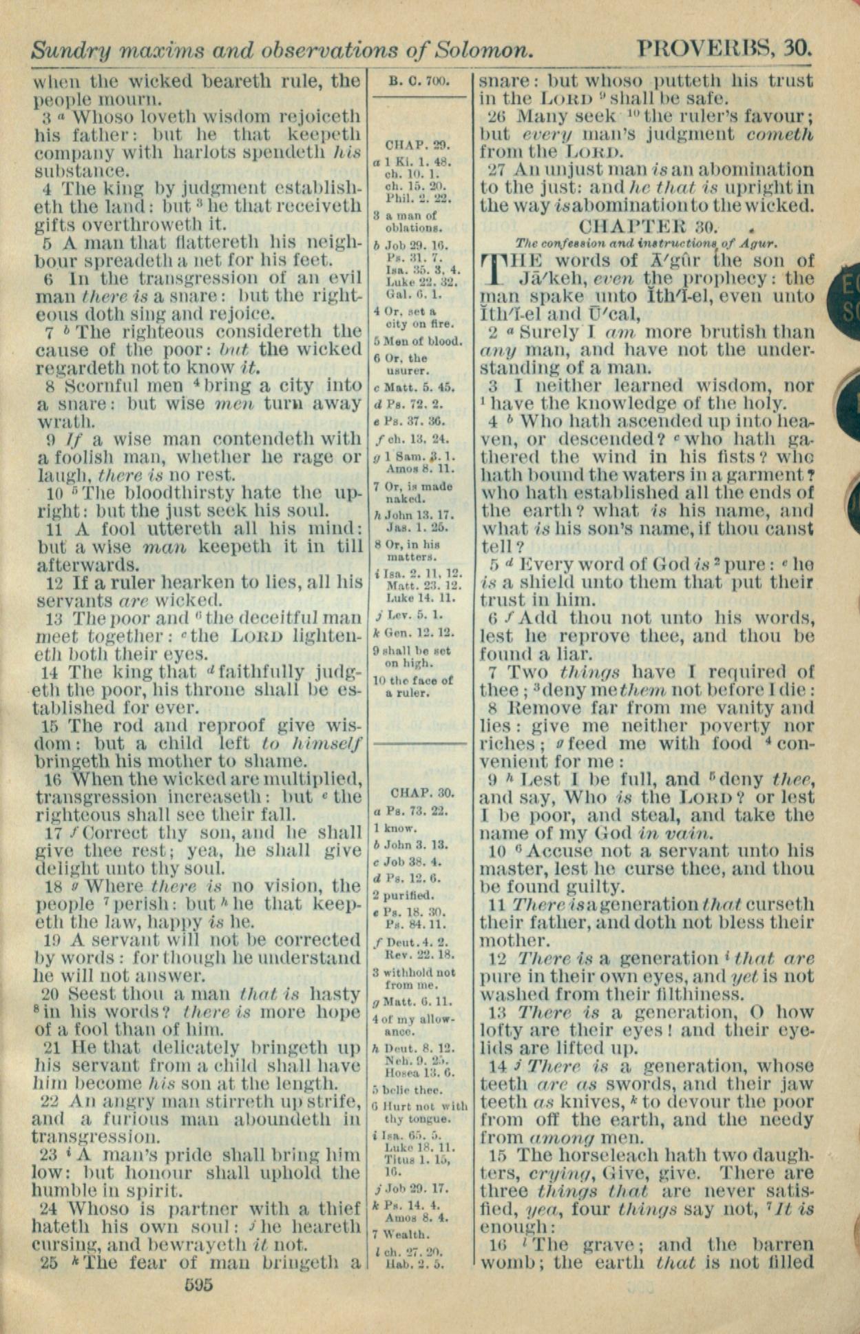 1916年Holy Bible 箴言 29 章 3 节到 30 章 16 节
