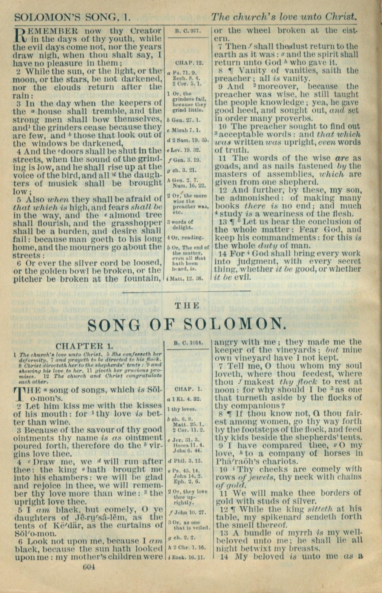 1916年Holy Bible 雅歌 1 章 1 节到 1 章 14 节