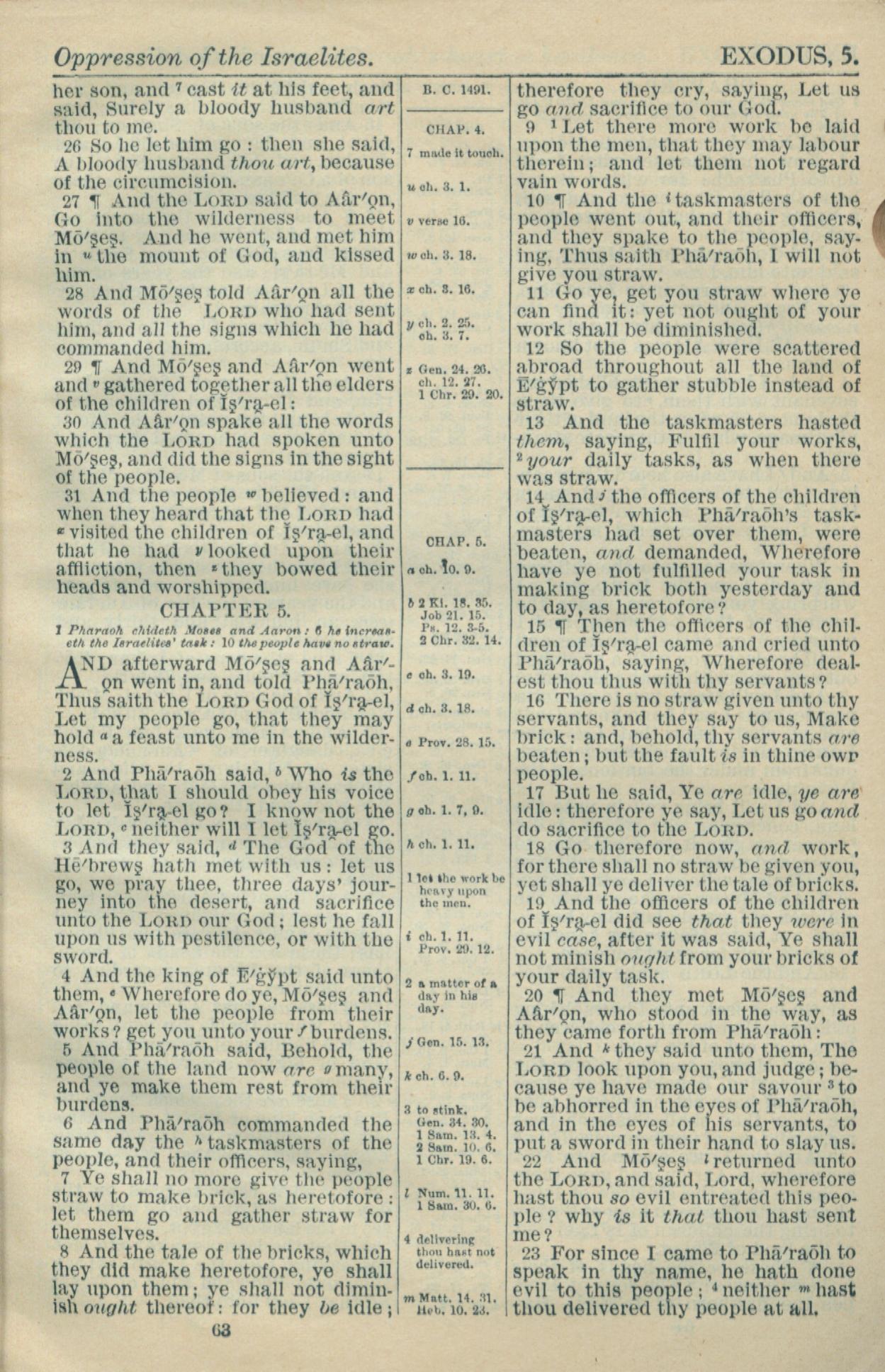 1916年Holy Bible 出埃及记 4 章 26 节到 5 章 23 节