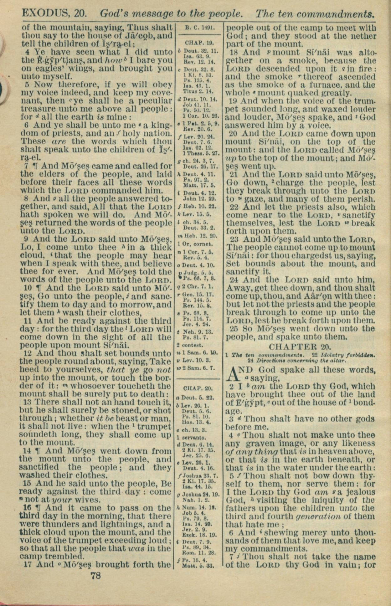 1916年Holy Bible 出埃及记 19 章 4 节到 20 章 7 节