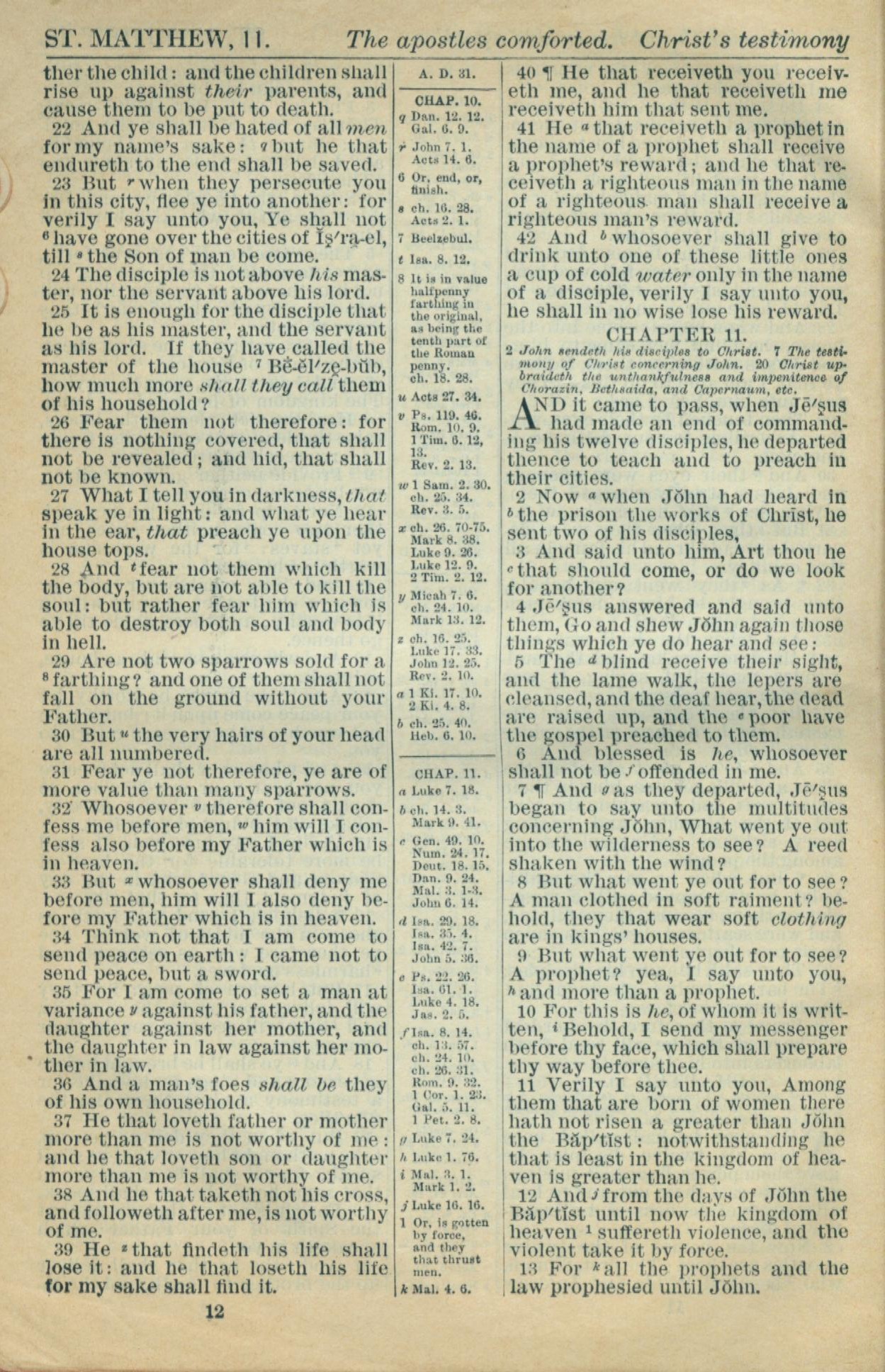 1916年Holy Bible 马太福音 10 章 22 节到 11 章 13 节