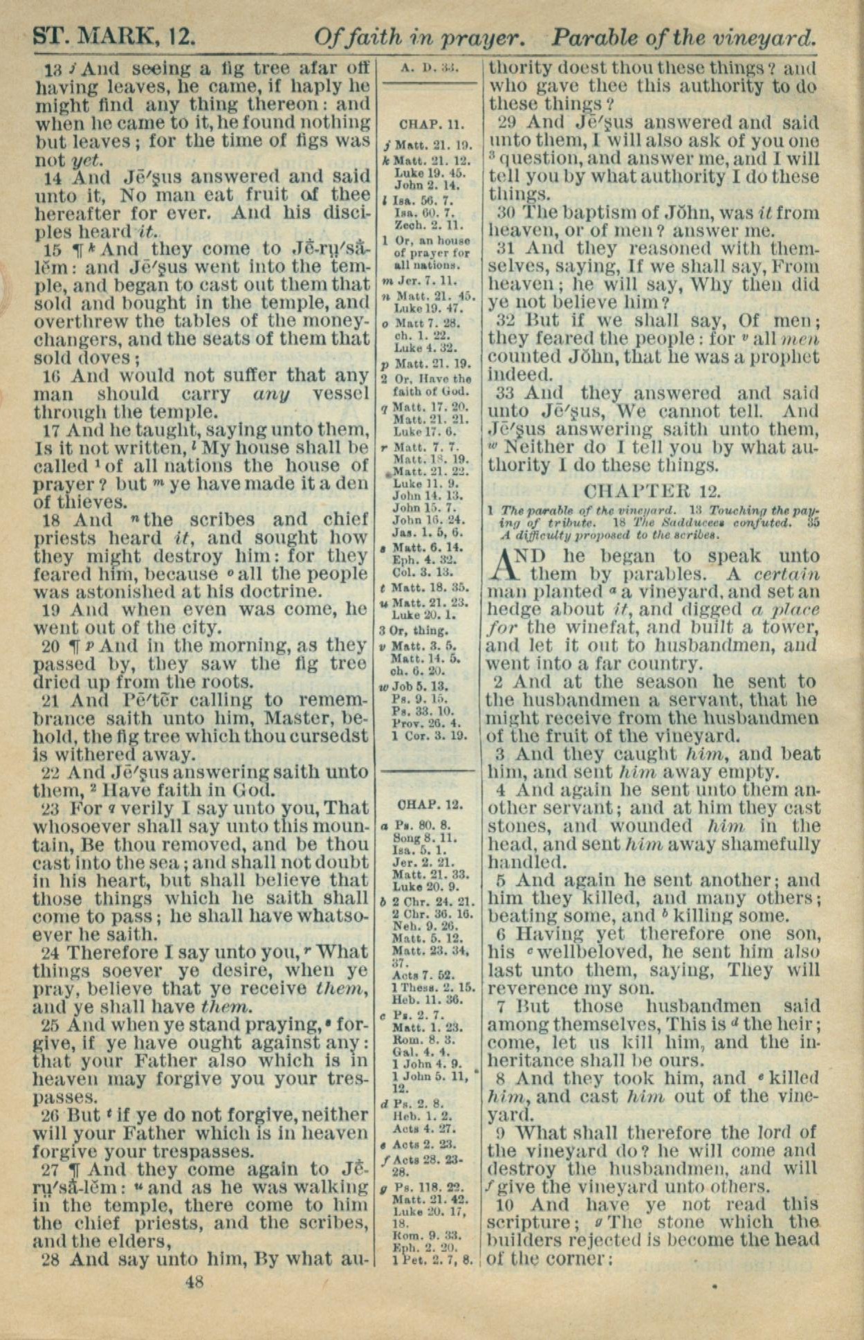 1916年Holy Bible 马可福音 11 章 13 节到 12 章 10 节
