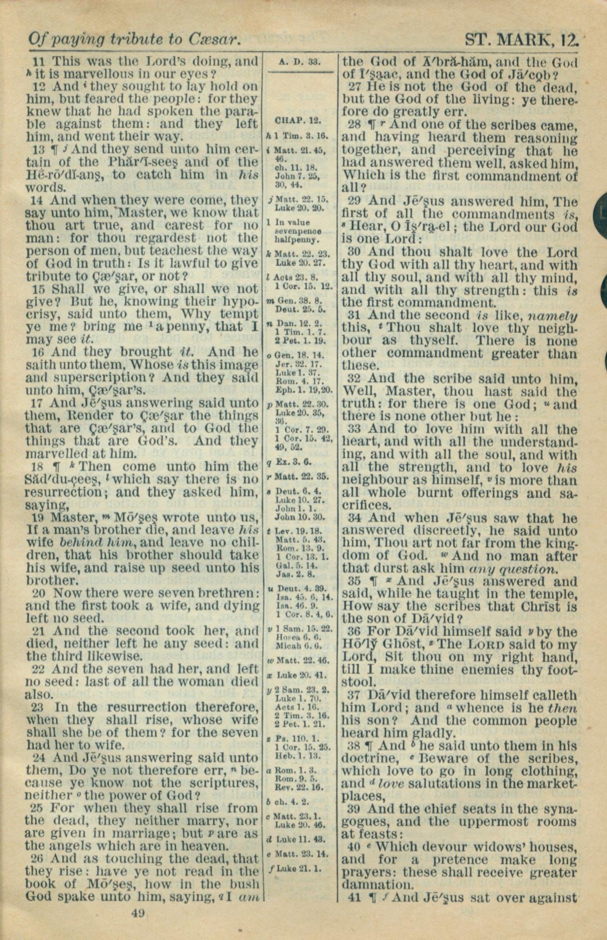1916年Holy Bible 马可福音 12 章 11 节到 12 章 41 节