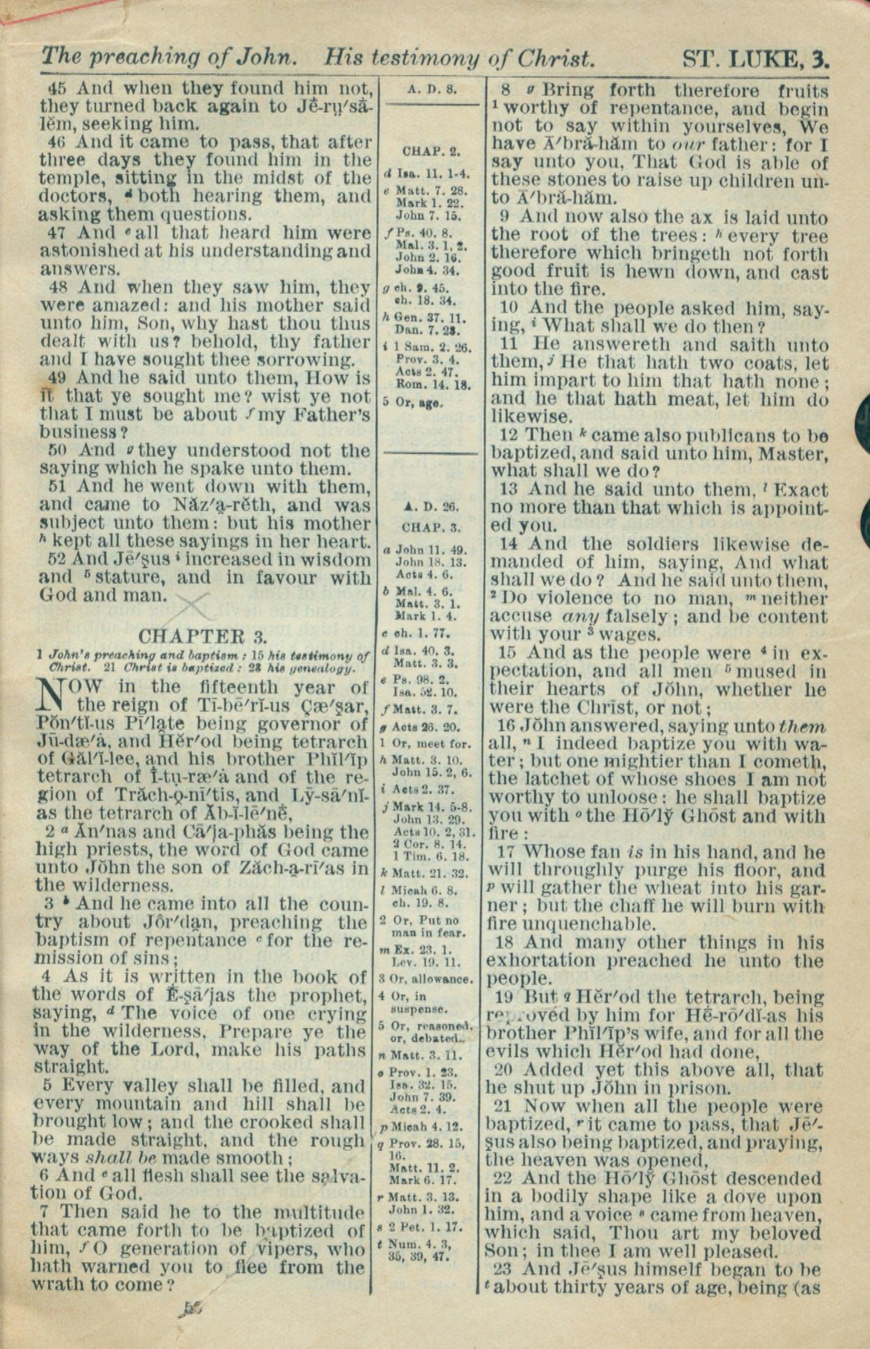1916年Holy Bible 路加福音 2 章 45 节到 3 章 23 节