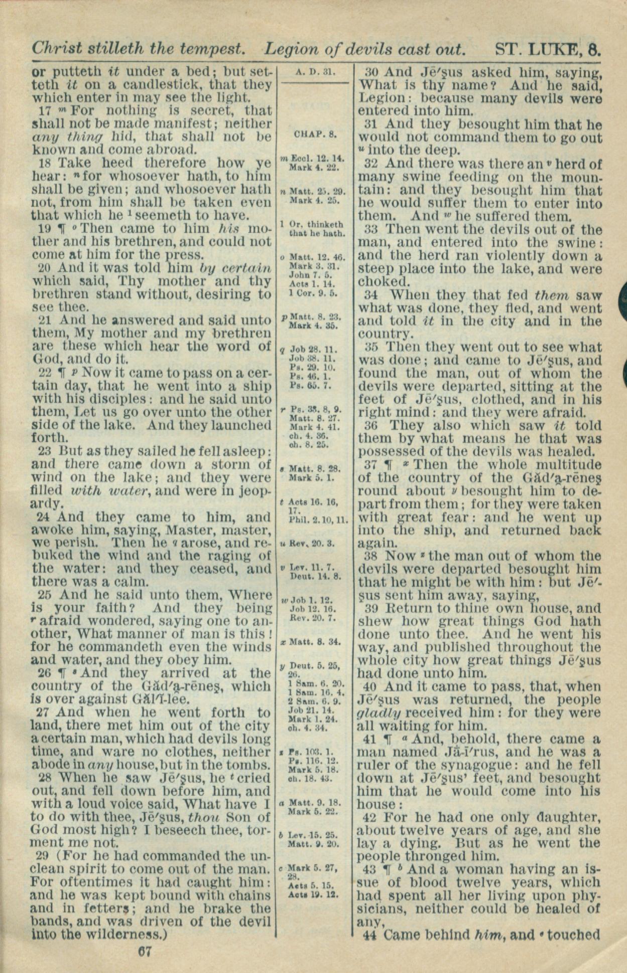 1916年Holy Bible 路加福音 8 章 17 节到 8 章 44 节