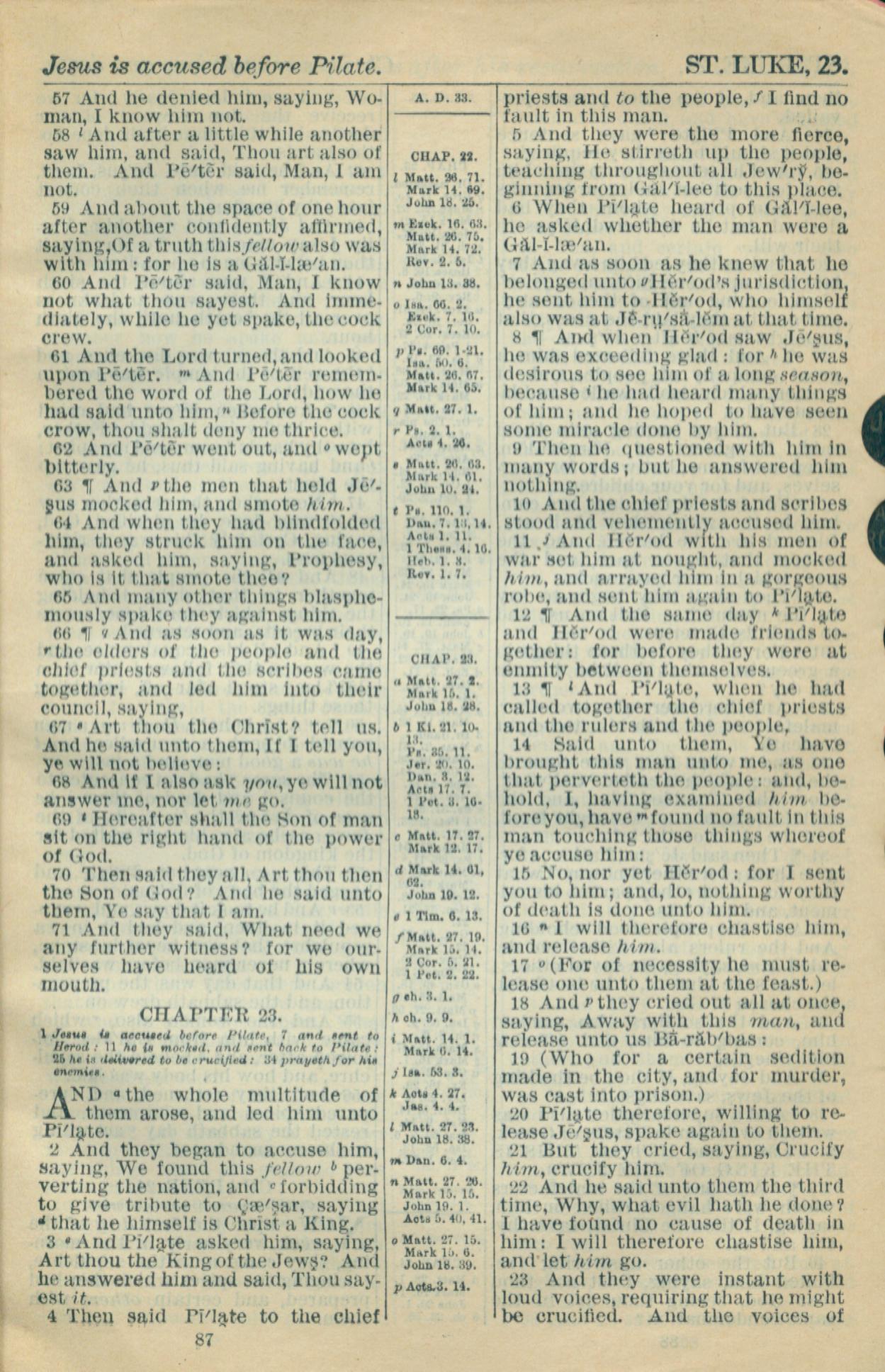 1916年Holy Bible 路加福音 22 章 57 节到 23 章 23 节
