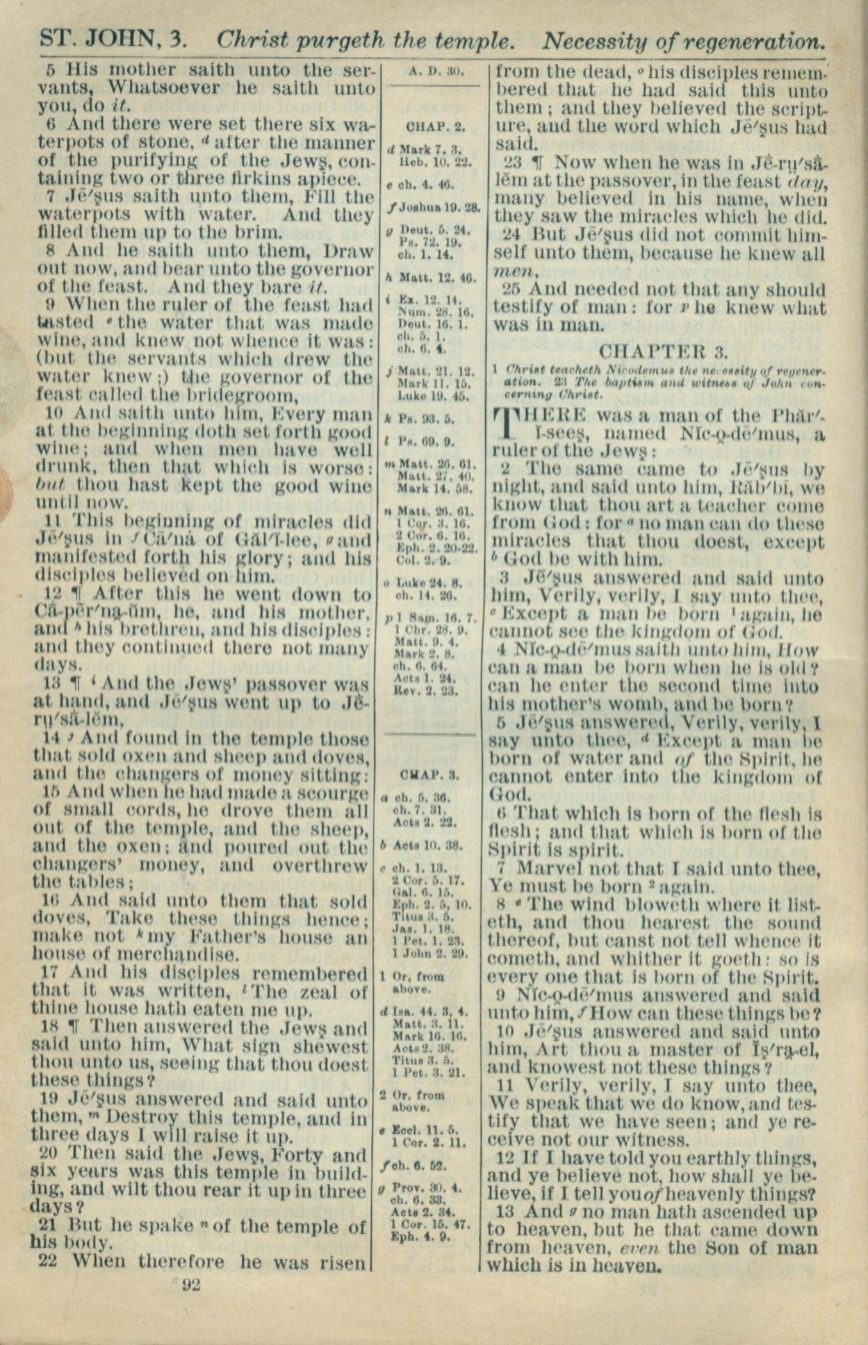 1916年Holy Bible 约翰福音 2 章 5 节到 3 章 13 节