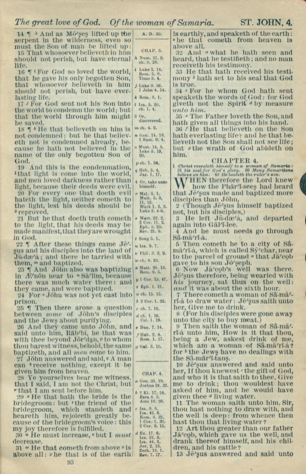 1916年Holy Bible 约翰福音 3 章 14 节到 4 章 13 节