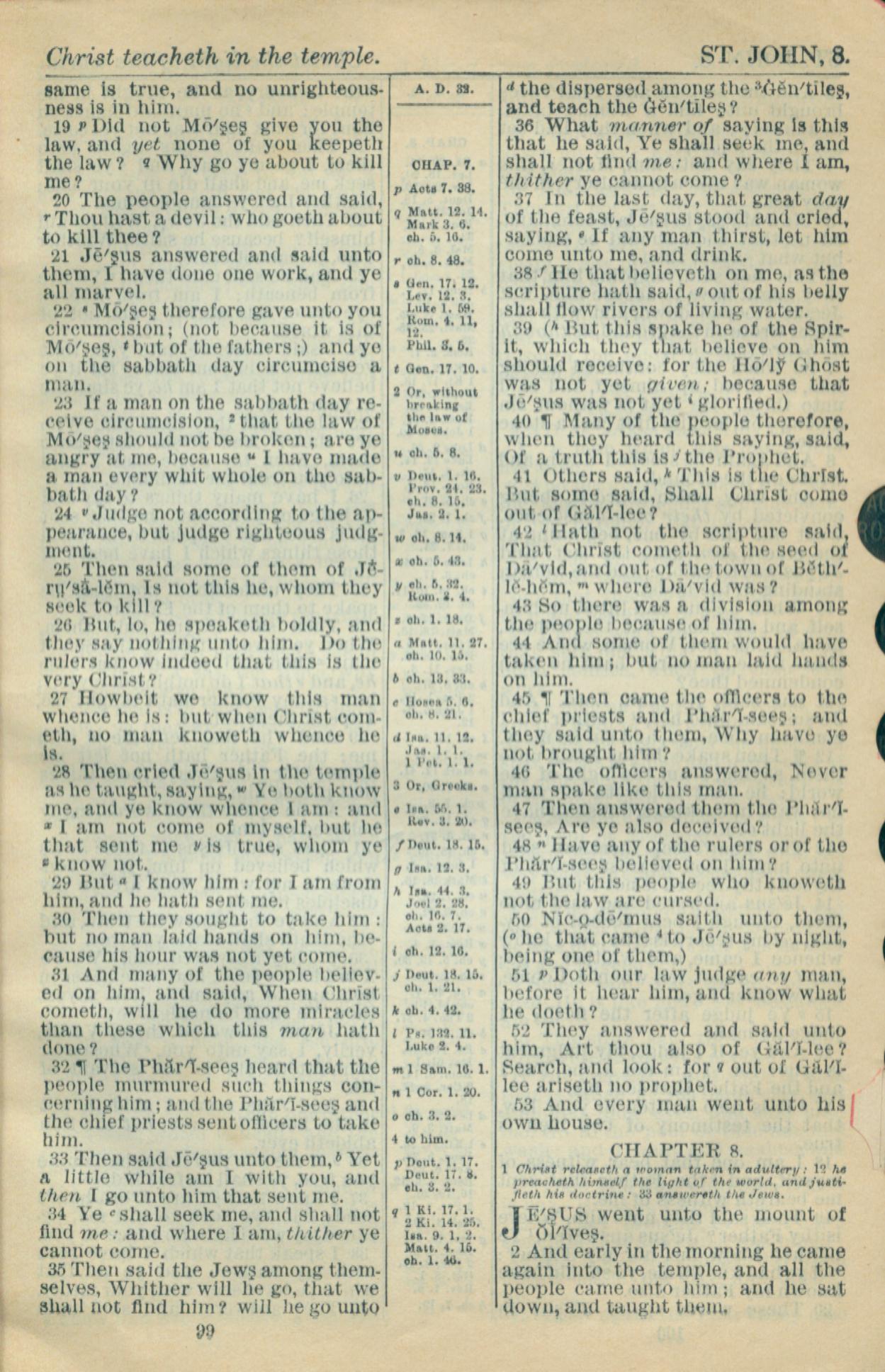 1916年Holy Bible 约翰福音 7 章 19 节到 8 章 2 节