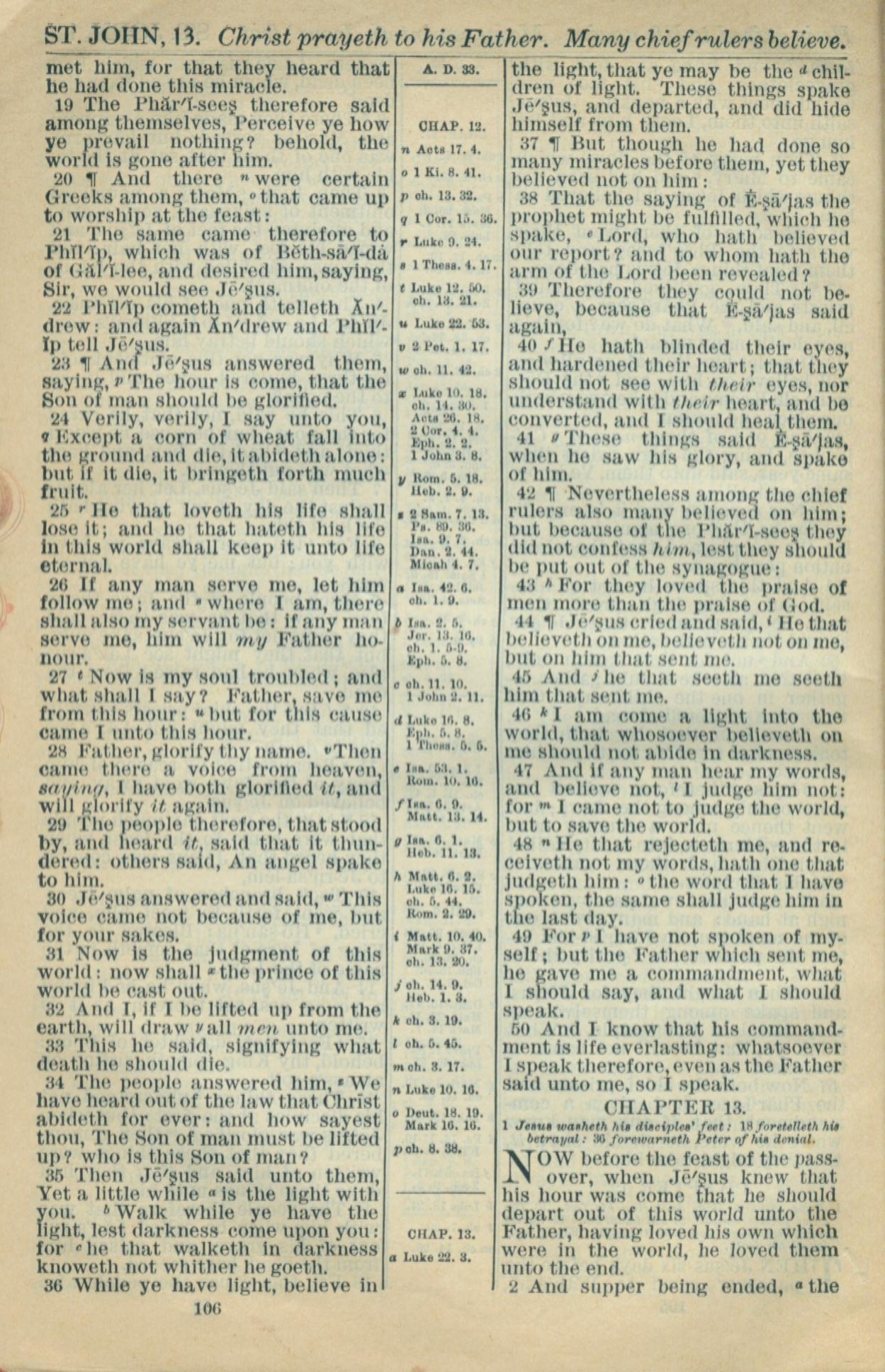 1916年Holy Bible 约翰福音 12 章 19 节到 13 章 2 节