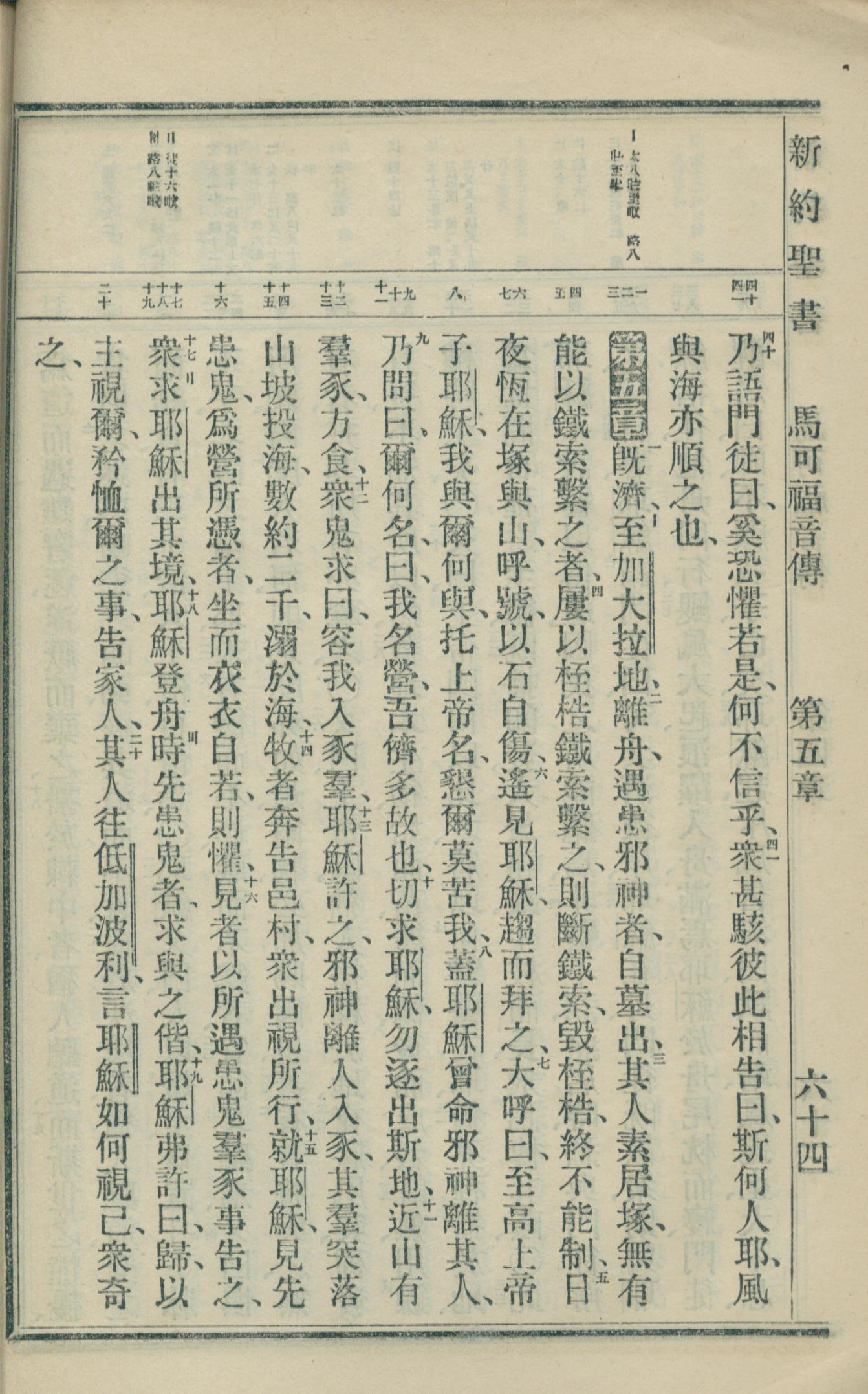 1918年新约全书(文理委办译本串珠版) 马可福音 4 章 40 节到 5 章 20 节