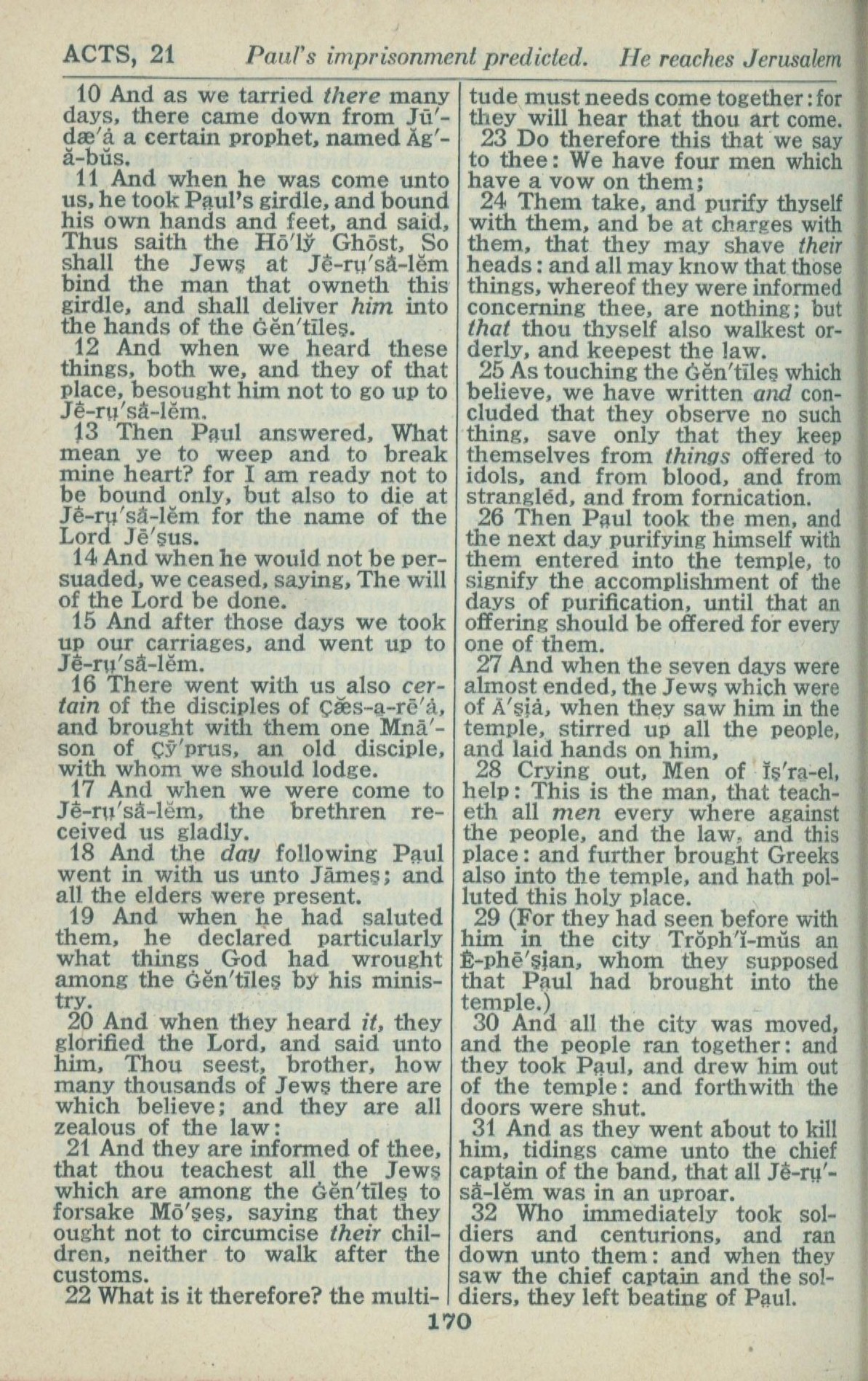 1946年King James Version 使徒行传 21 章 10 节到 21 章 32 节