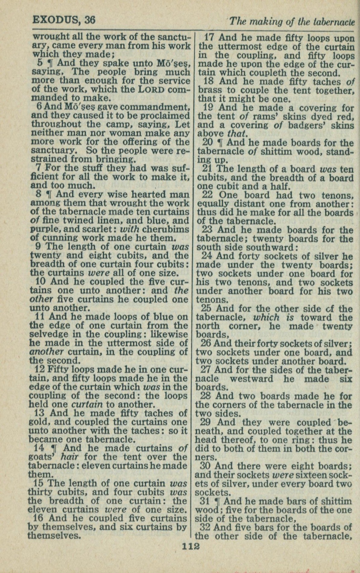 1946年King James Version 出埃及记 36 章 5 节到 36 章 32 节