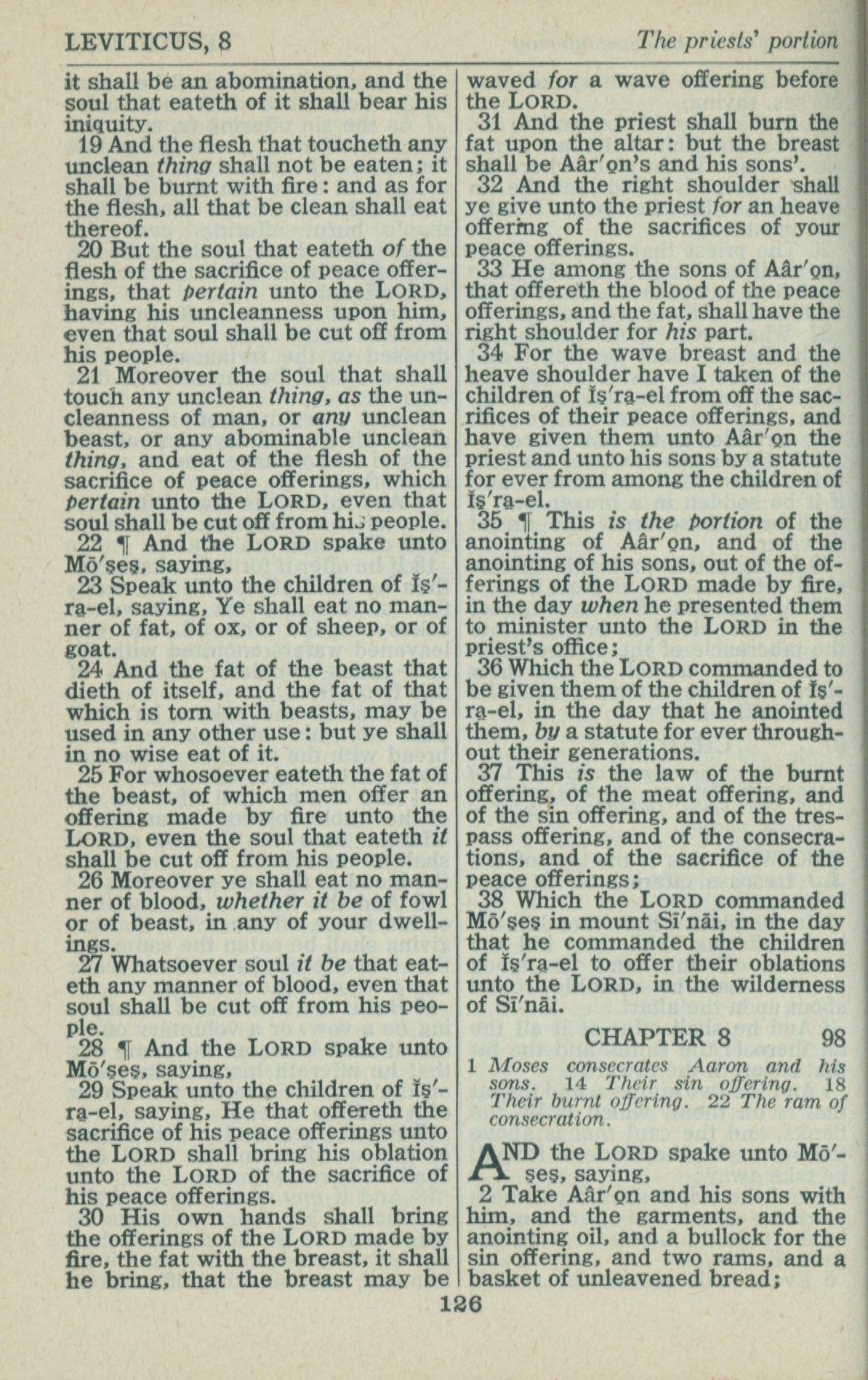 1946年King James Version 利未记 7 章 19 节到 8 章 2 节