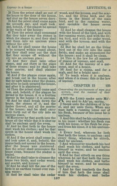 1946年King James Version 利未记 14 章 38 节到 15 章 7 节