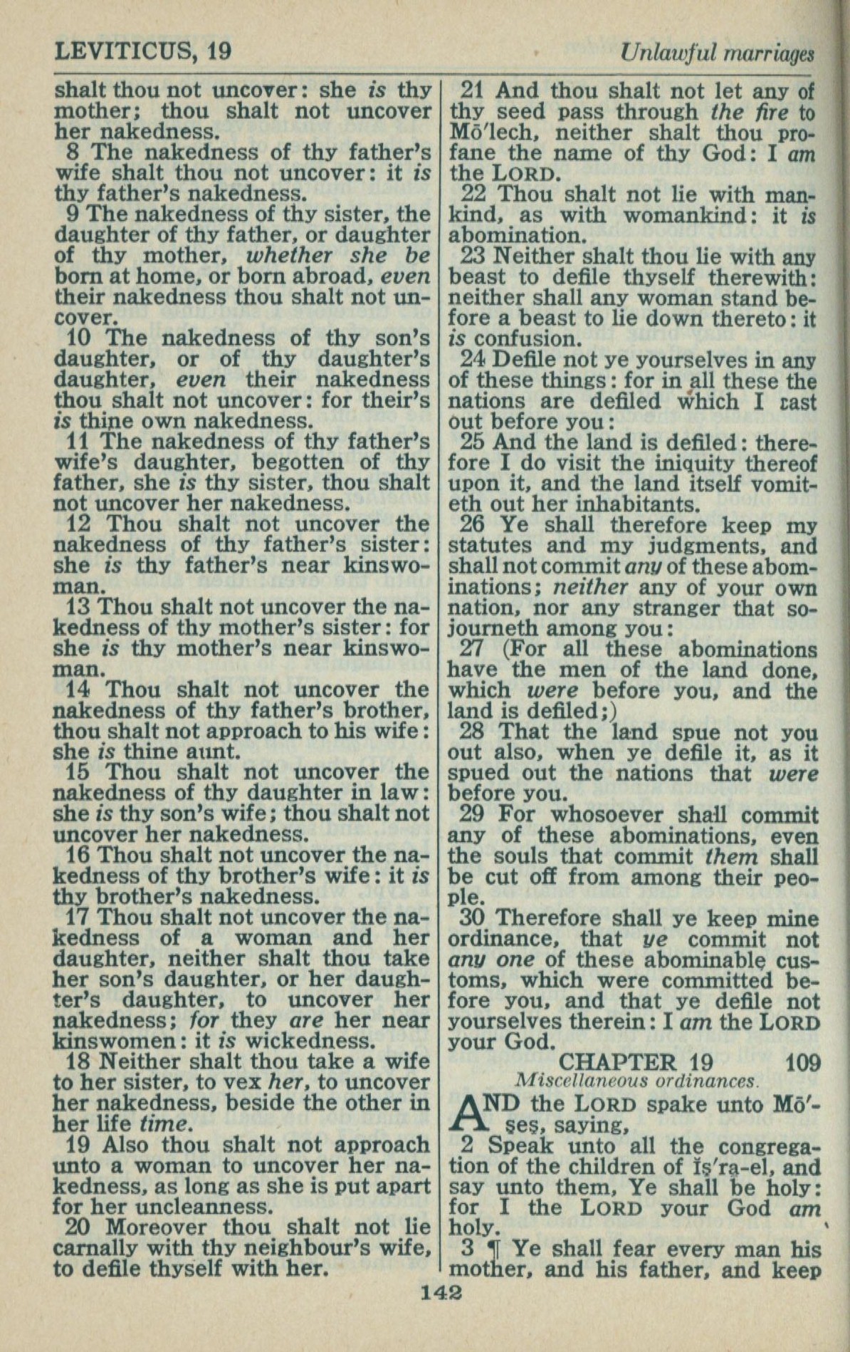 1946年King James Version 利未记 18 章 8 节到 19 章 3 节