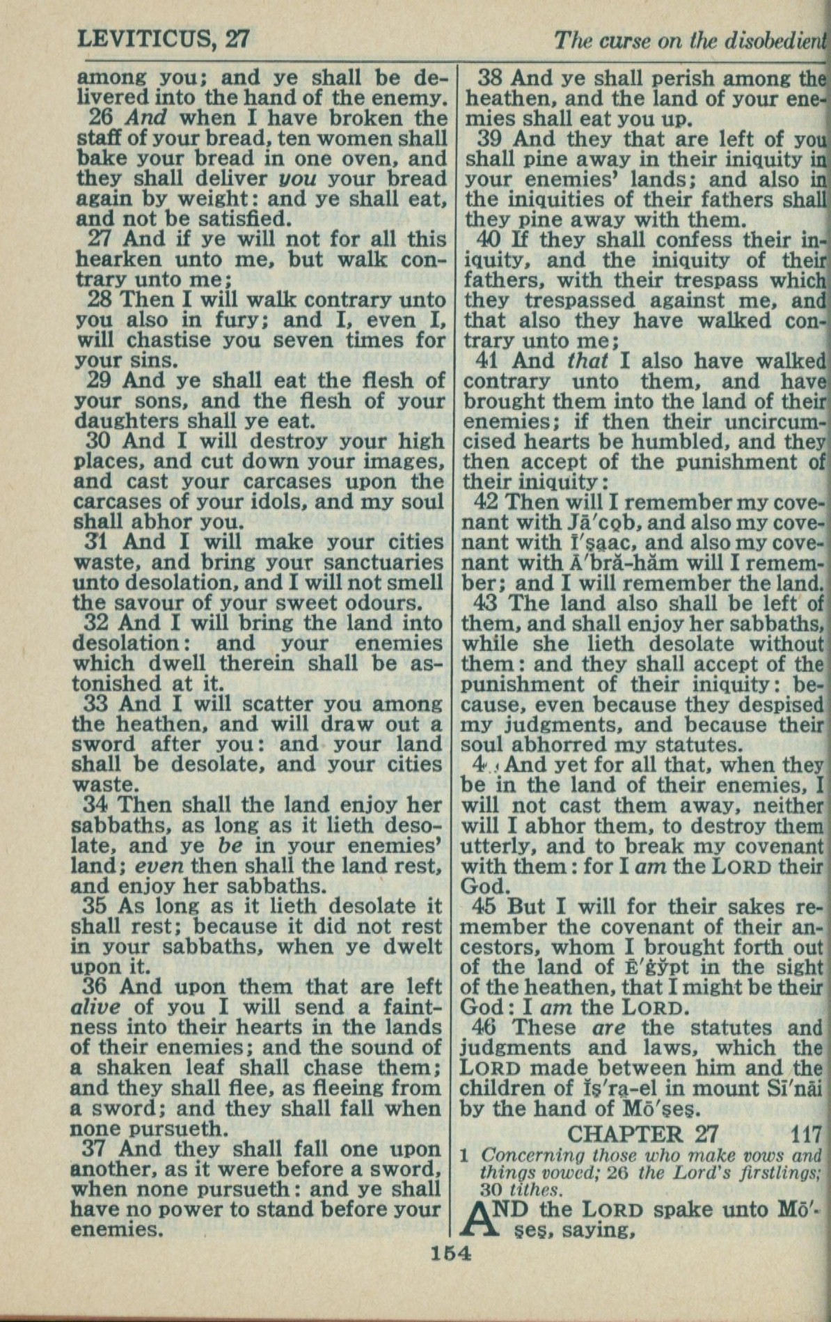 1946年King James Version 利未记 26 章 26 节到 27 章 1 节