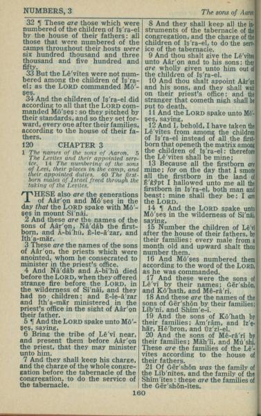 1946年King James Version 民数记 2 章 32 节到 3 章 21 节