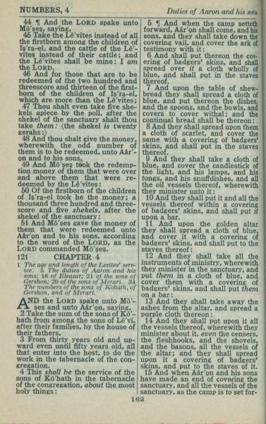 1946年King James Version 民数记 3 章 44 节到 4 章 15 节