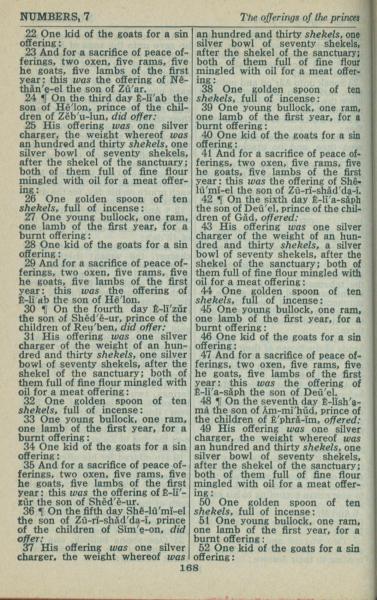 1946年King James Version 民数记 7 章 22 节到 7 章 52 节