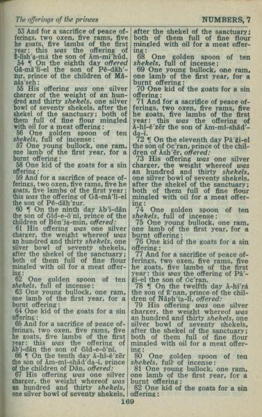 1946年King James Version 民数记 7 章 53 节到 7 章 82 节