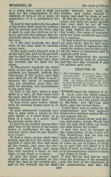 1946年King James Version 民数记 19 章 10 节到 20 章 6 节