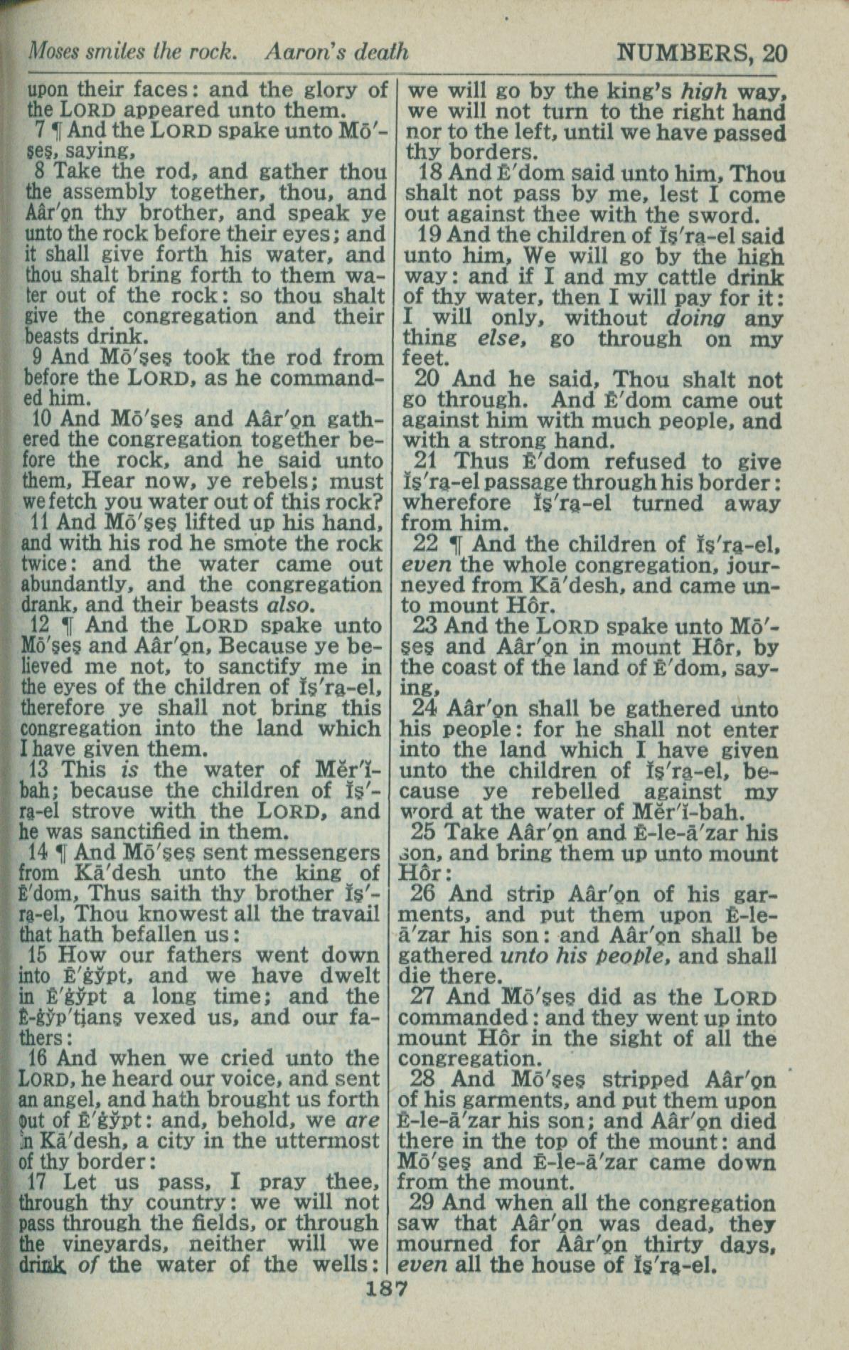 1946年King James Version 民数记 20 章 7 节到 20 章 29 节