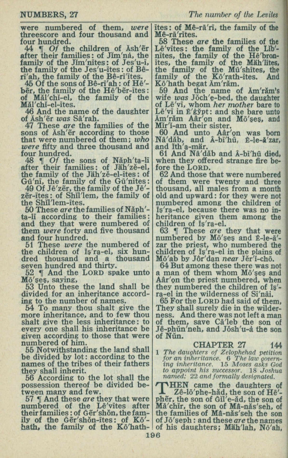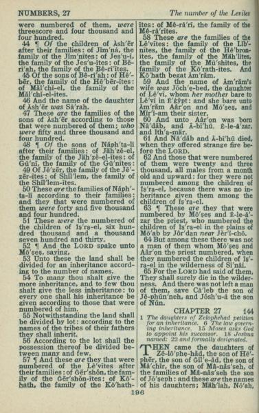 1946年King James Version 民数记 26 章 44 节到 27 章 1 节