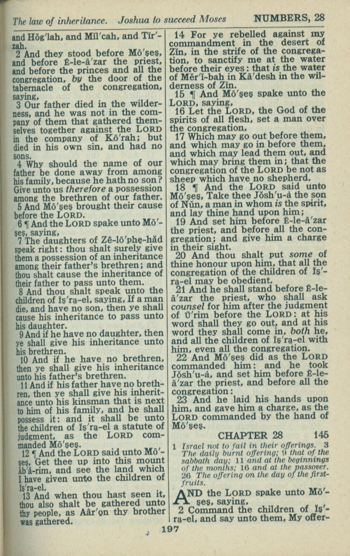 1946年King James Version 民数记 27 章 2 节到 28 章 2 节