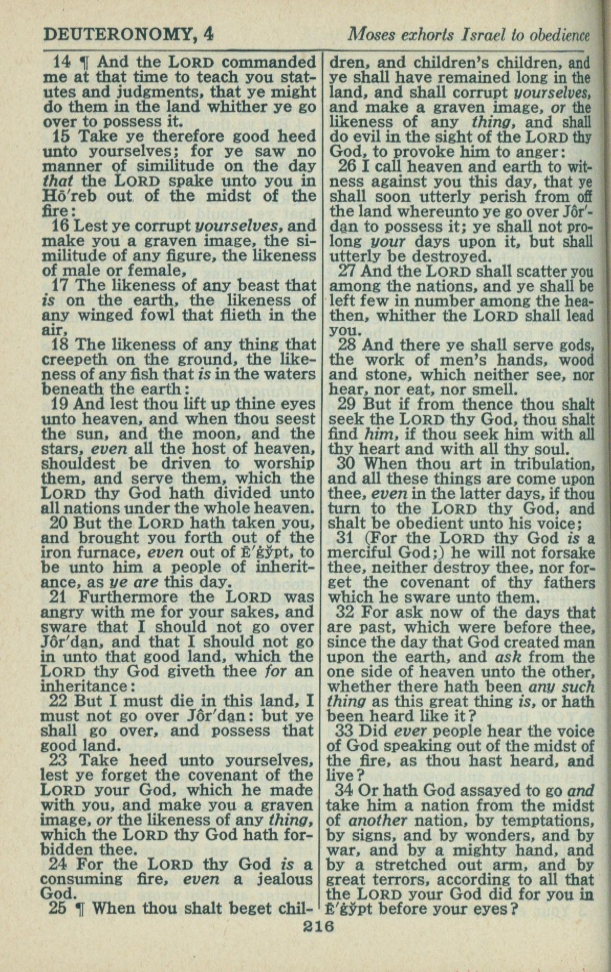 1946年King James Version 申命记 4 章 14 节到 4 章 34 节