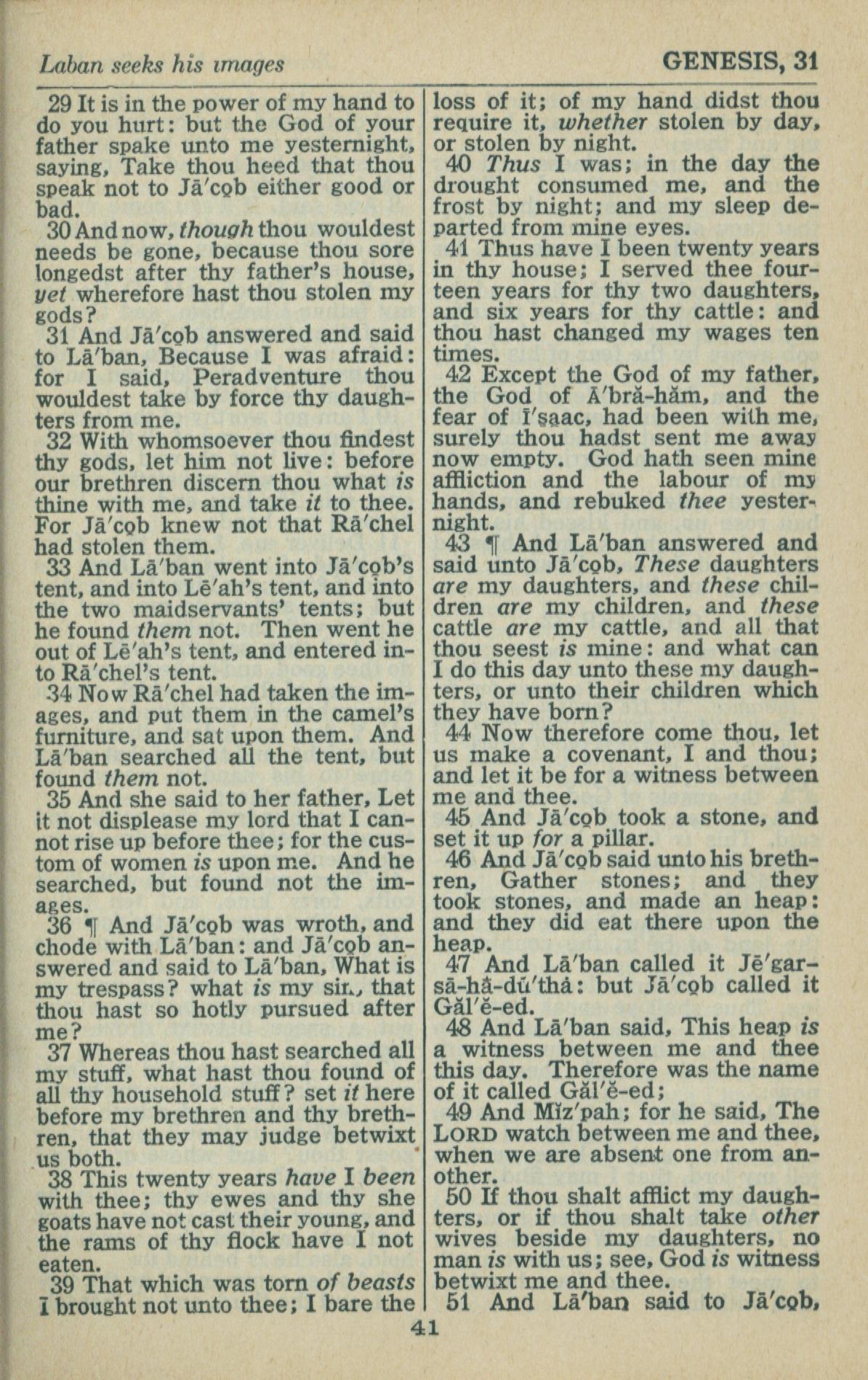 1946年King James Version 创世记 31 章 29 节到 31 章 51 节