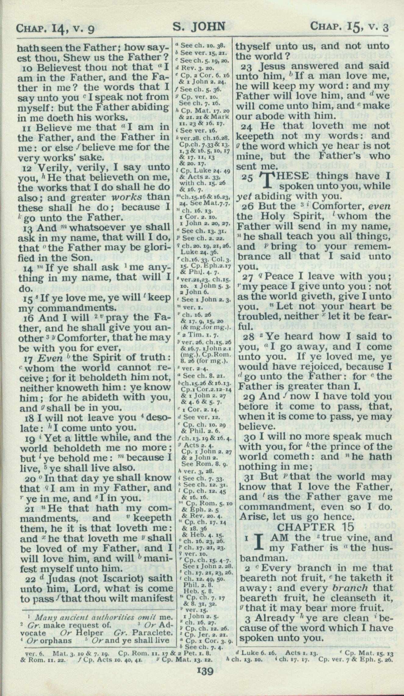 1898年Revised Version 约翰福音 14 章 10 节到 15 章 3 节