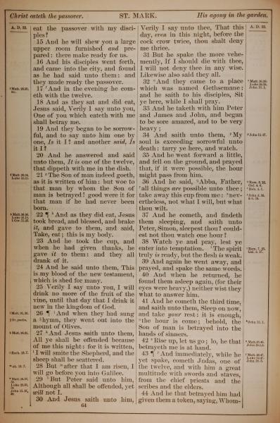 1882年Holy Bible 马可福音 14 章 15 节到 14 章 44 节