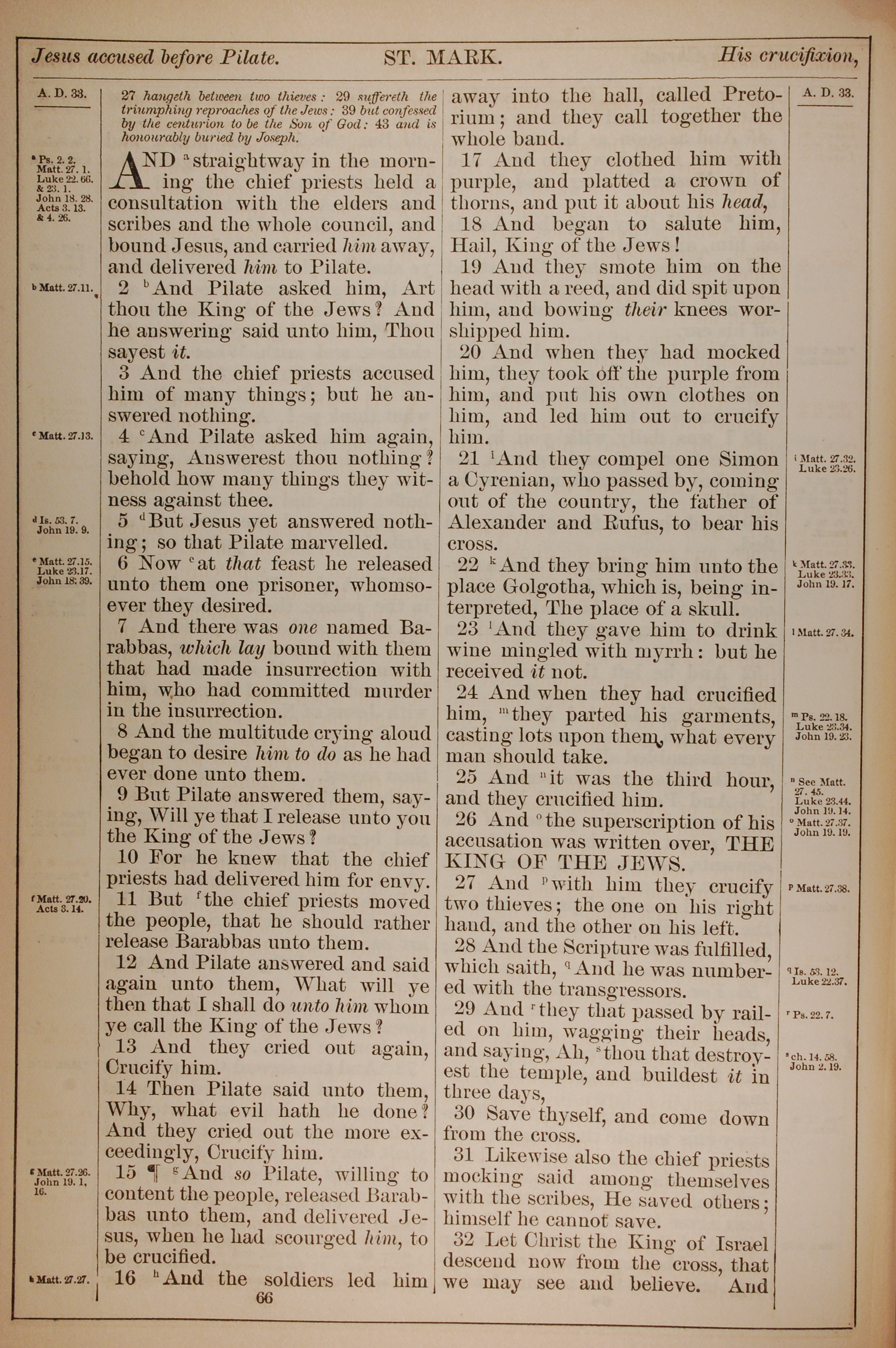 1882年Holy Bible 马可福音 15 章 1 节到 15 章 32 节