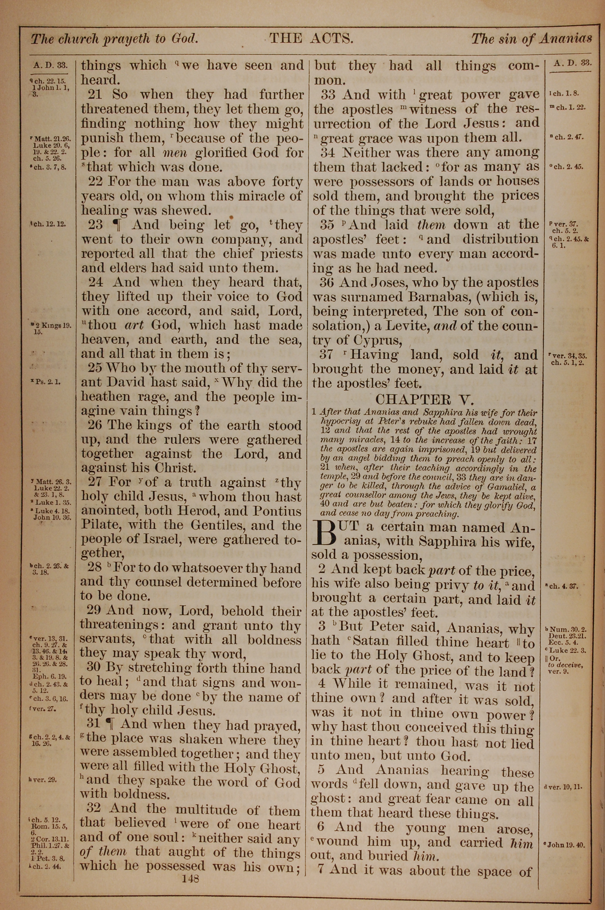 1882年Holy Bible 使徒行传 4 章 21 节到 5 章 7 节