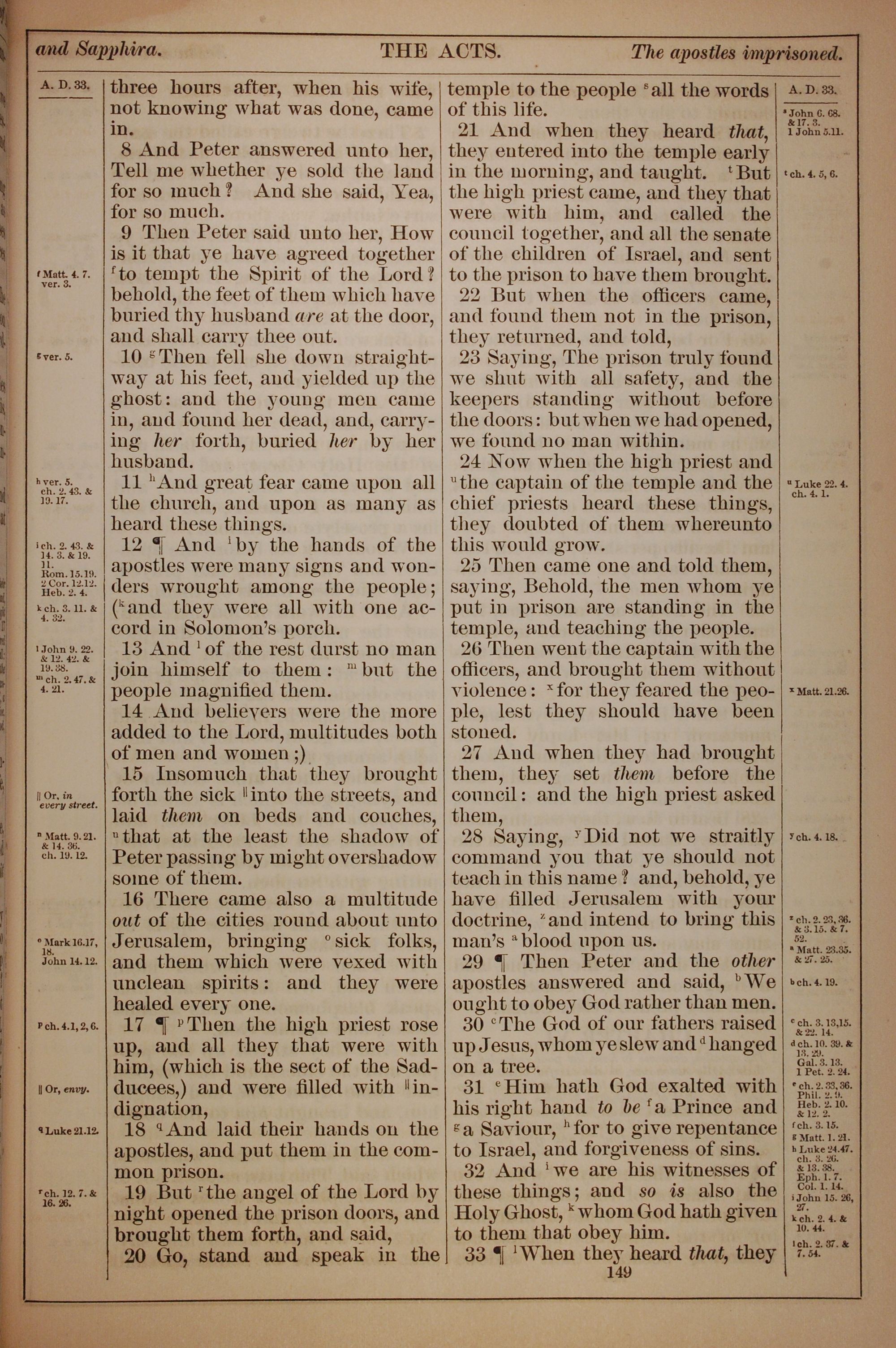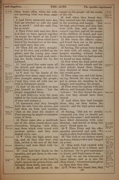 1882年Holy Bible 使徒行传 5 章 8 节到 5 章 33 节