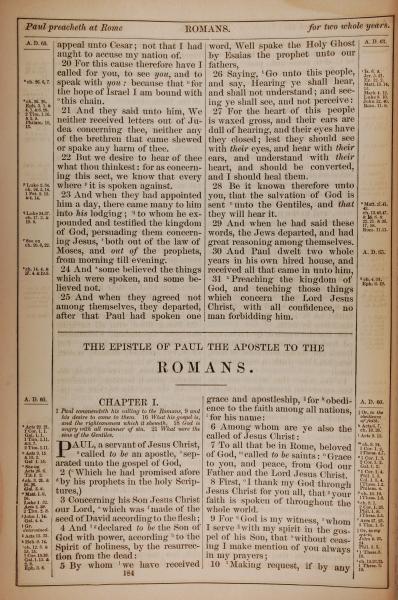 1882年Holy Bible 罗马书 1 章 1 节到 1 章 10 节