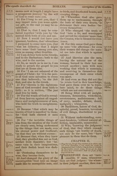 1882年Holy Bible 罗马书 1 章 11 节到 2 章 1 节