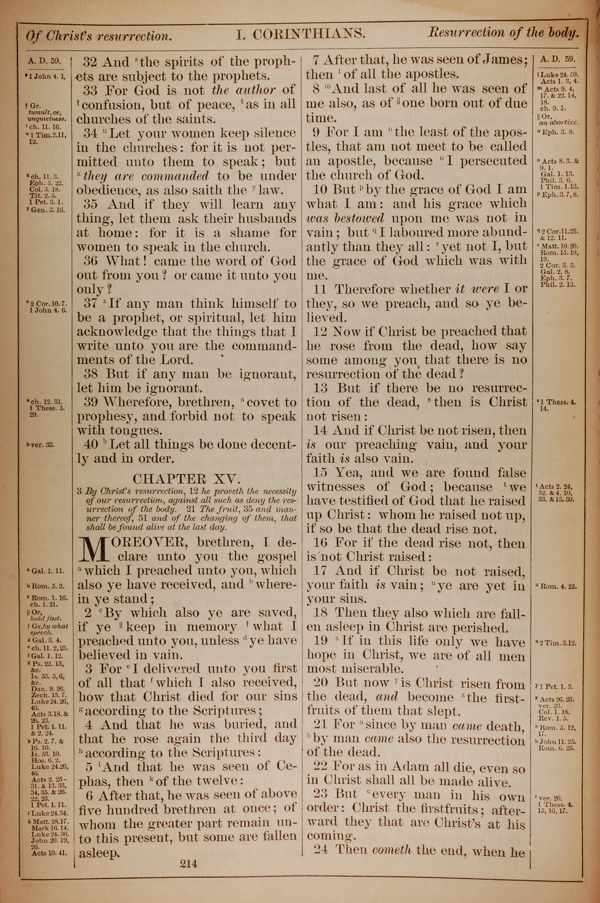 1882年Holy Bible 哥林多前书 14 章 32 节到 15 章 24 节